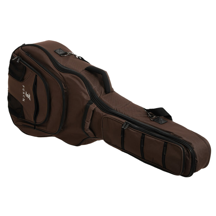 The Furch Blue Deluxe SW is made with all solid Sitka Spruce and Black Walnut. It produces clear and open tones, well-balanced across the entire tonal spectrum and is excellent for fingerstyle play. With the Bevel Duo feature, it provides maximum player comfort even during prolonged play. Stately appointments give it an elegant look. We include a Furch gigbag.