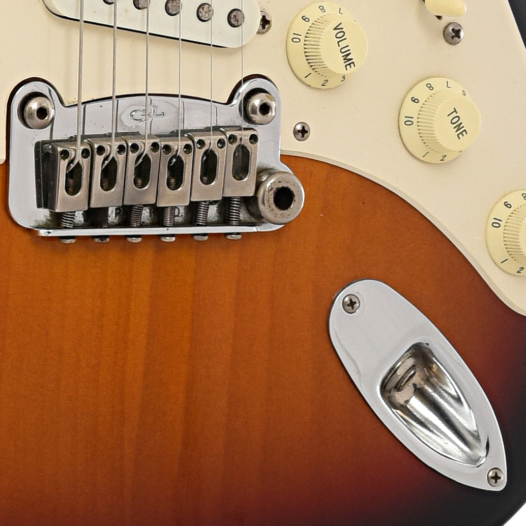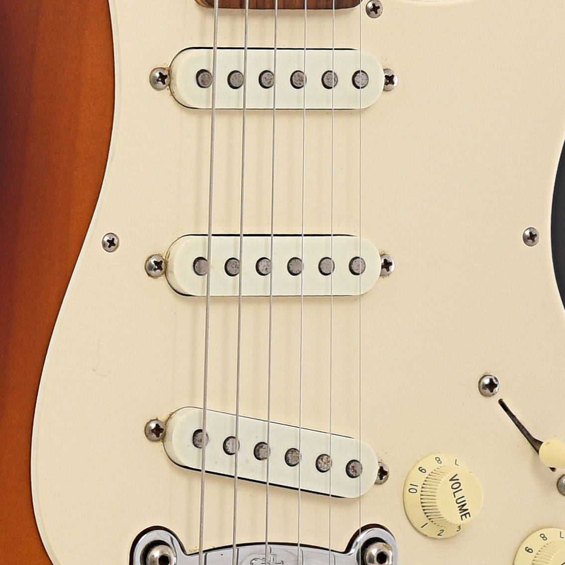 This G&L Legacy features a classic 3-tone sunburst finish and a rosewood fretboard with dot markers. It’s equipped with three G&L single-coil pickups and a G&L tremolo bridge. Comes with the original thermoplastic hard case. Made in USA. On consignment.