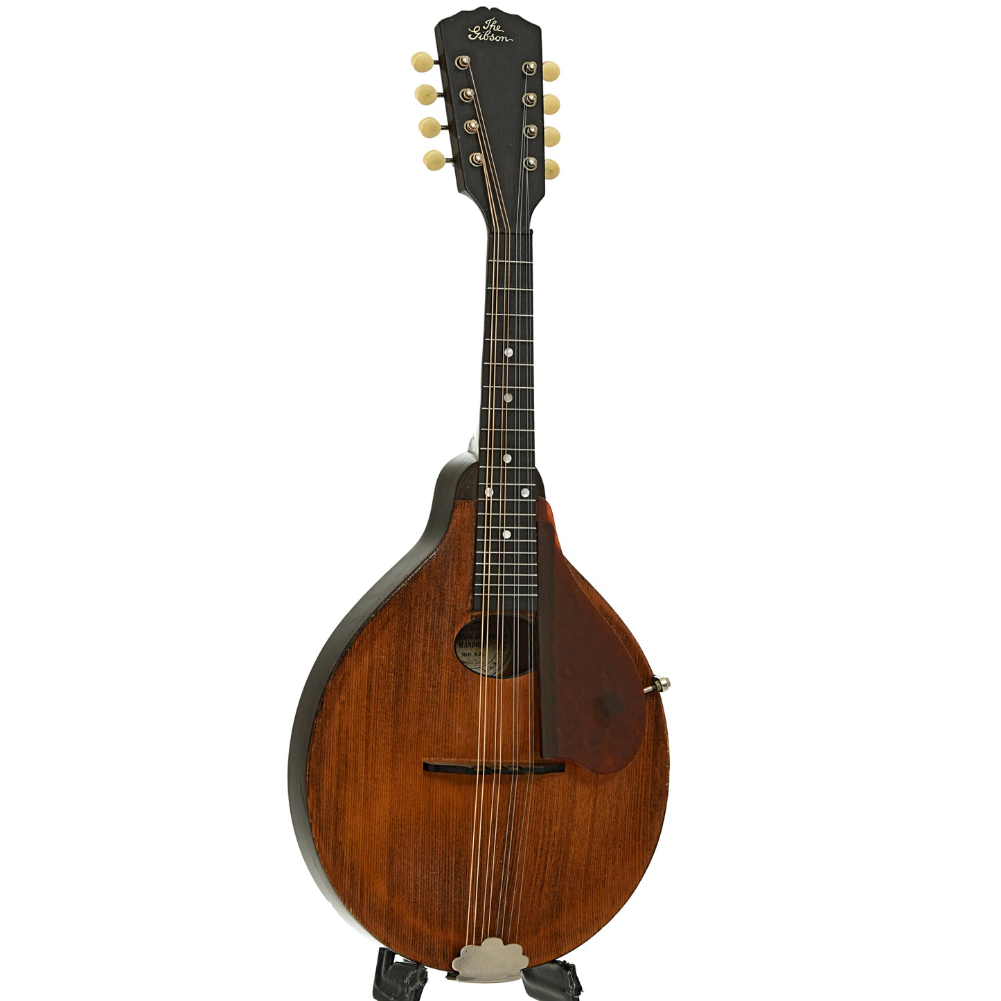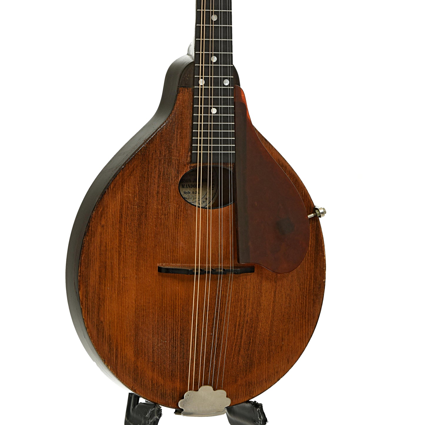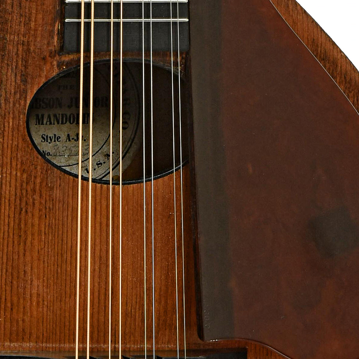 - Round label inside mandolin reads "GIBSON MANDOLIN-GUITAR CO. / THE / GIBSON JUNIOR / MANDOLIN / Style A-Jr."