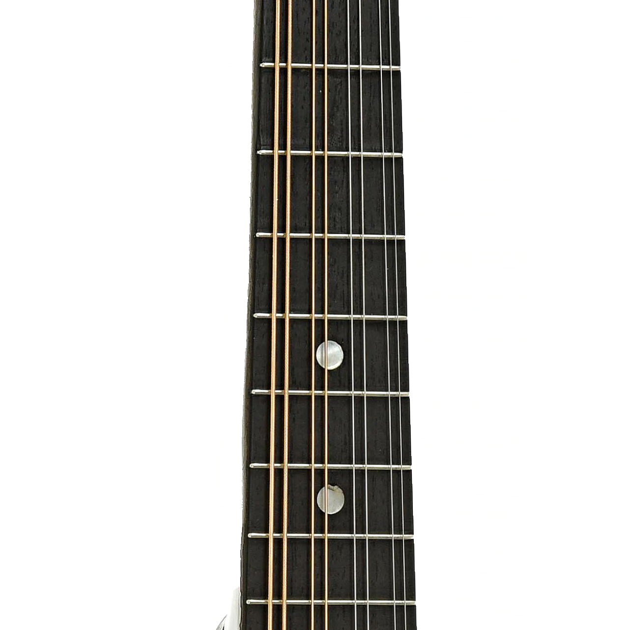 - Ebony flat fingerboard, pearl dot inlays