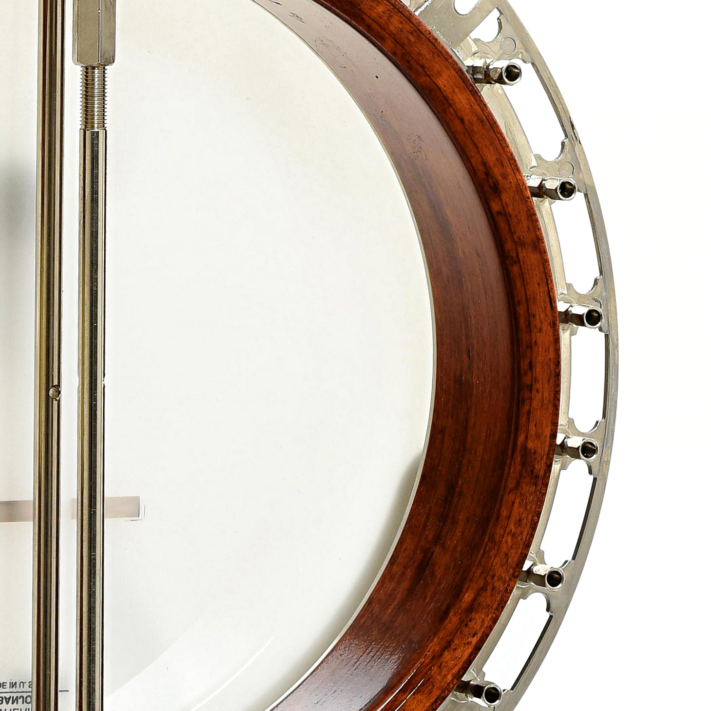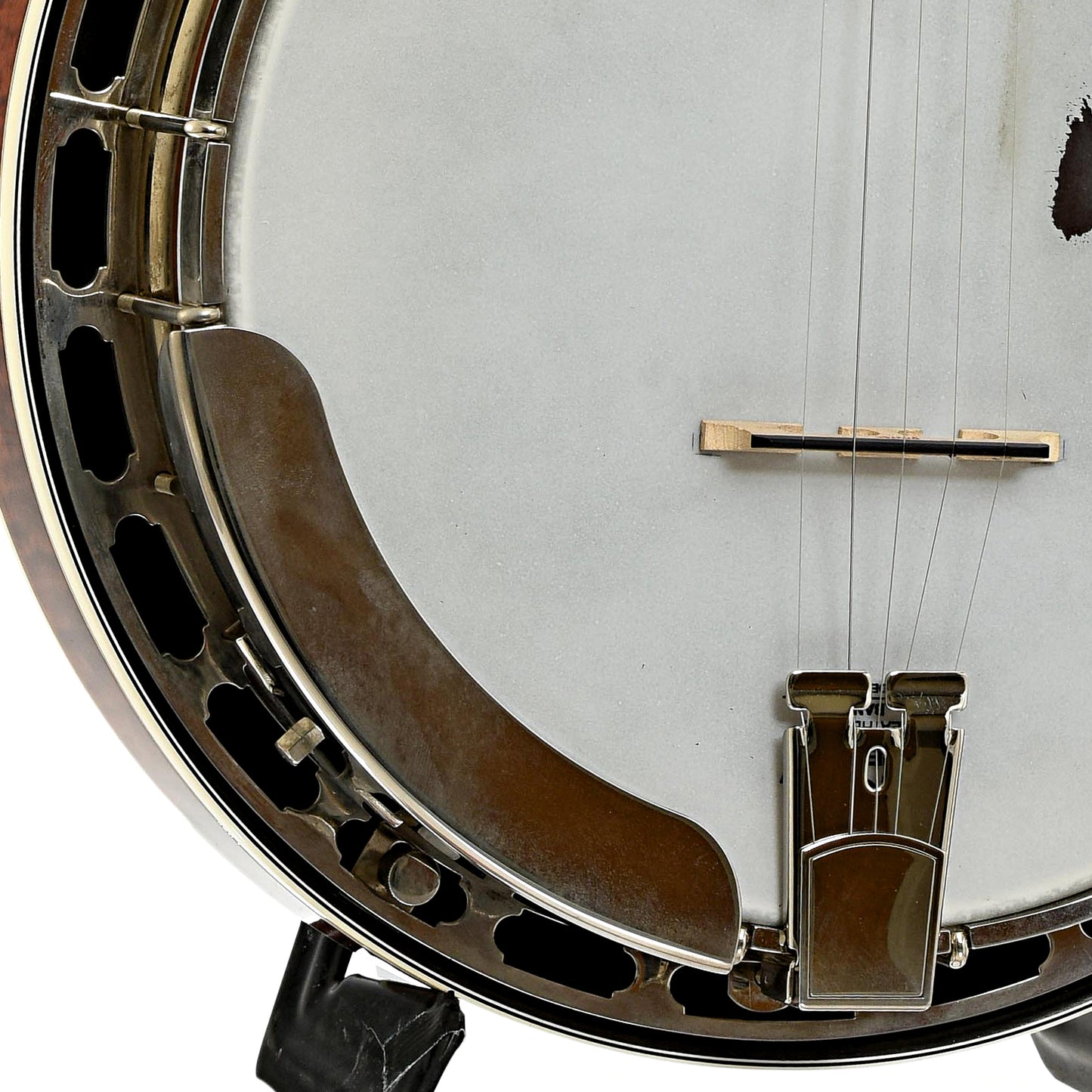 Big tone and volume on this Earl Scruggs model! Features include flamed maple neck and double white-bound resonator, a bound ebony fingerboard, 3-ply maple rim, 1-piece flange, and 20-hole flathead tone ring. It has hearts and flowers inlays and geared tuners. Original hard shell case. Made in USA. On consignment.