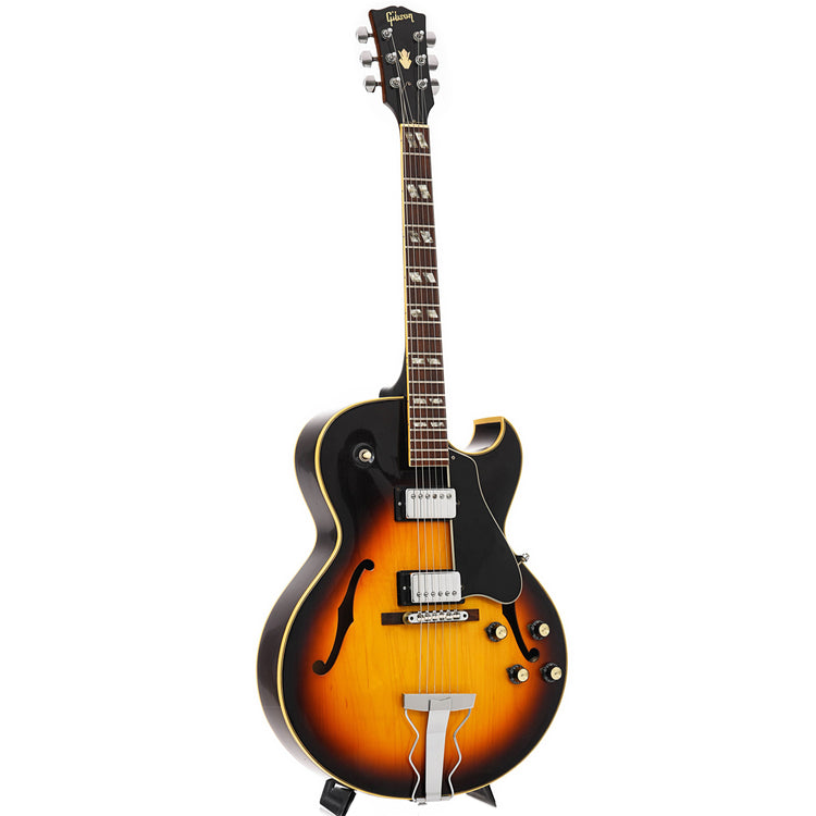 A fine example of this popular Gibson model. Featuring a sunburst finish on a double bound all maple body. The mahogany neck has a bound Brazilian rosewood fretboard with split parallelogram inlays. Equipped with 2 patent # humbucking pickups. Great looks and sound!