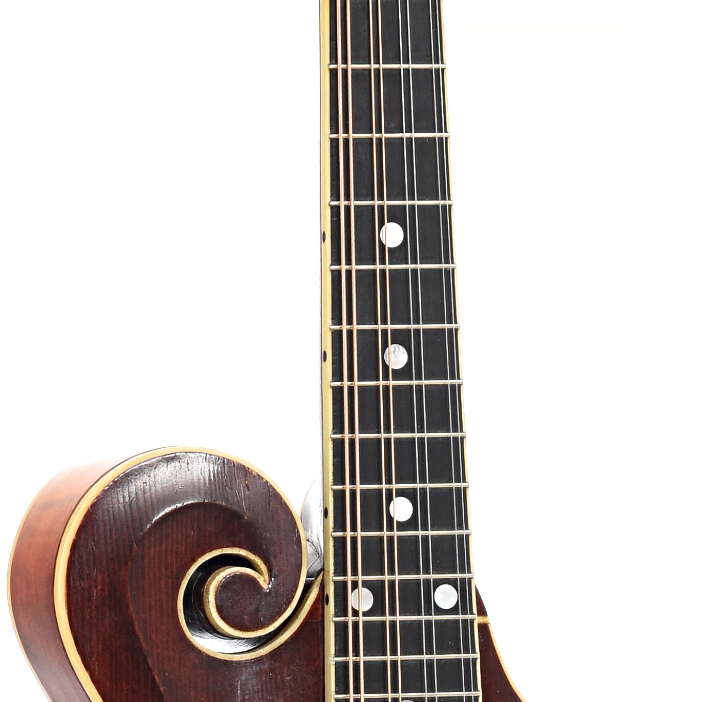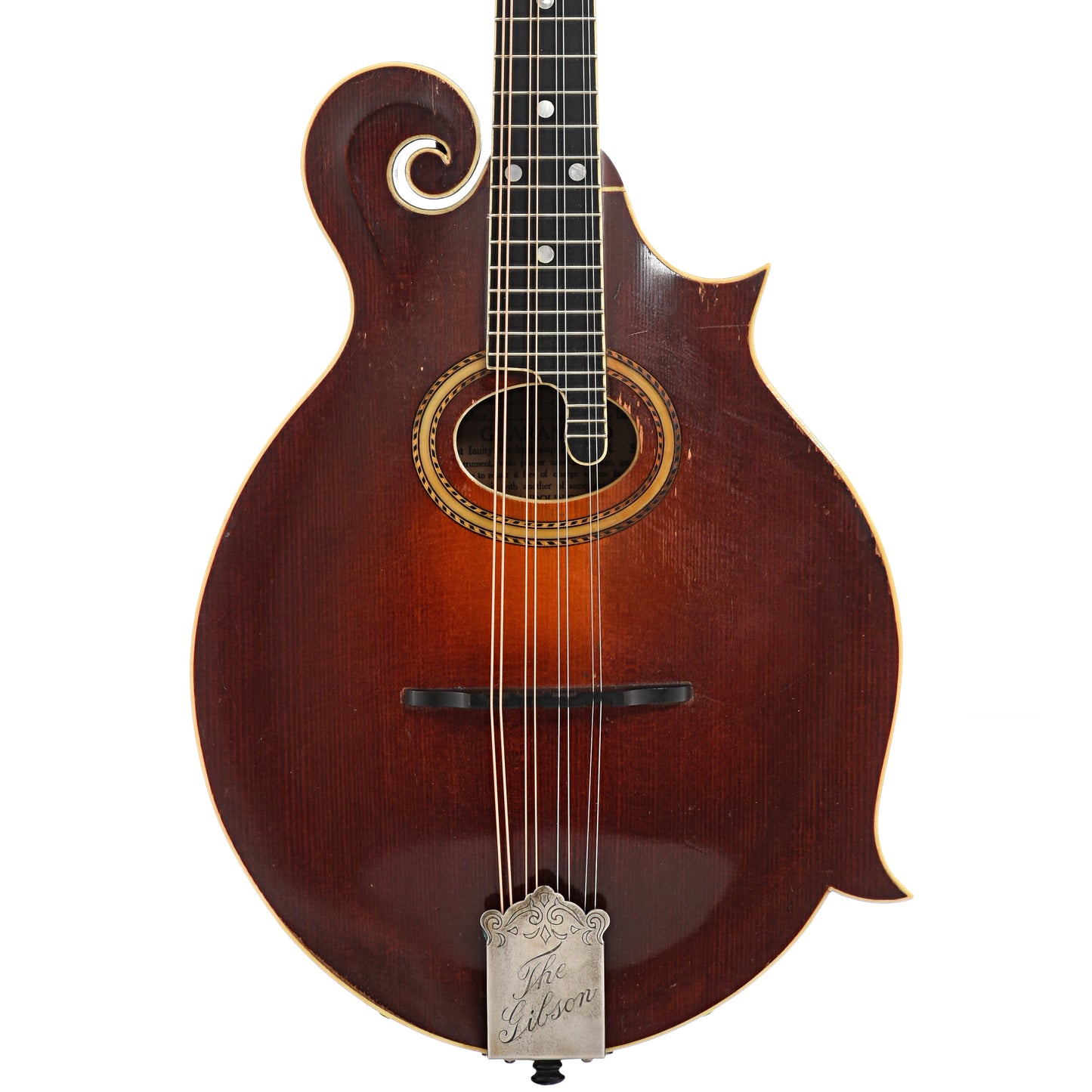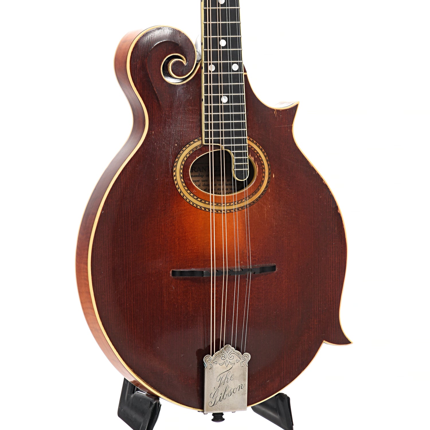 A nice piece of Gibson history, this F-4 has a red sunburst finish on carved spruce top, maple back and sides, and a mahogany neck. Features also include an ebony fingerboard and bridge, and a bound headstock with "The Gibson" script logo and double flowerpot inlay. Ready to play! Original hardshell case. Made in USA. On consignment.