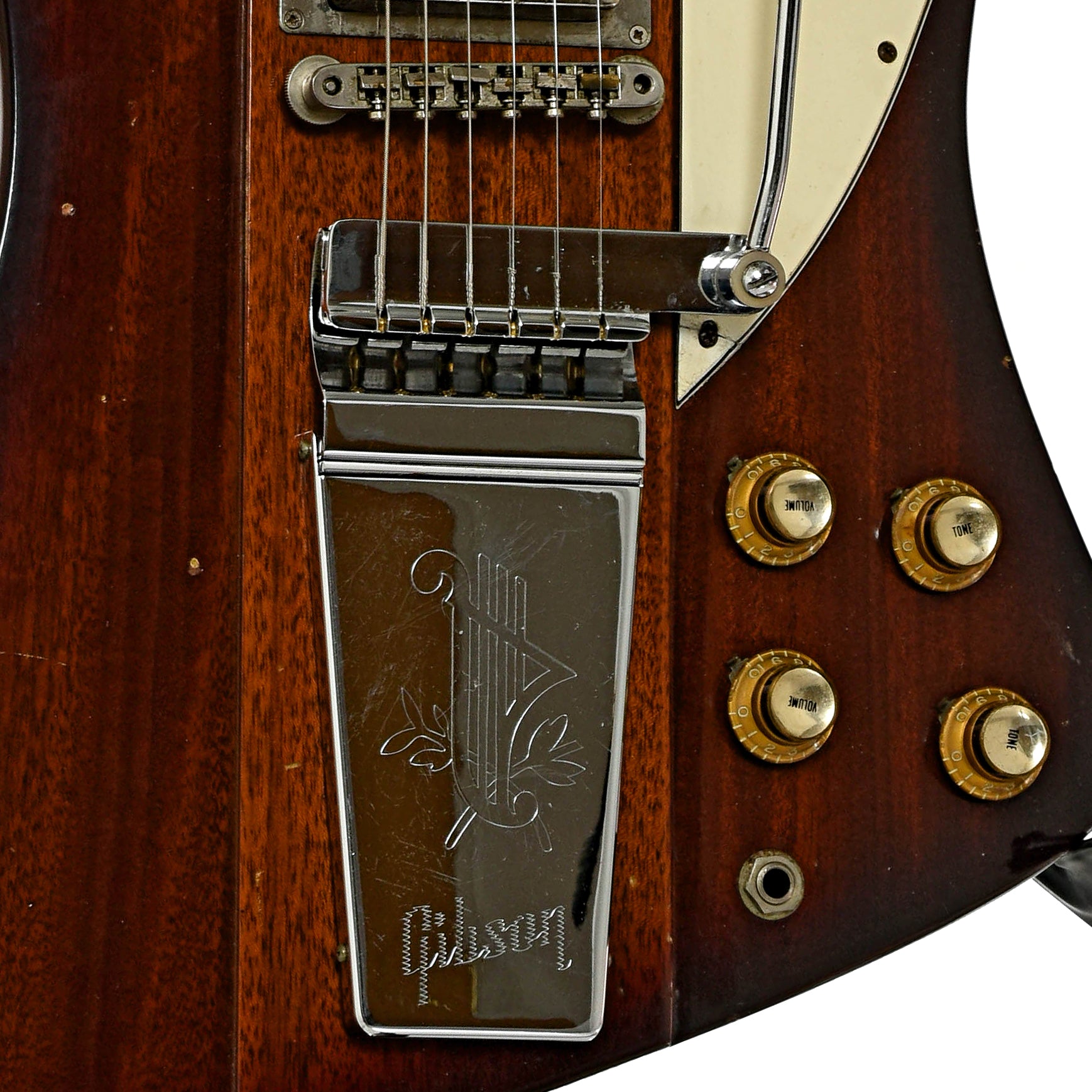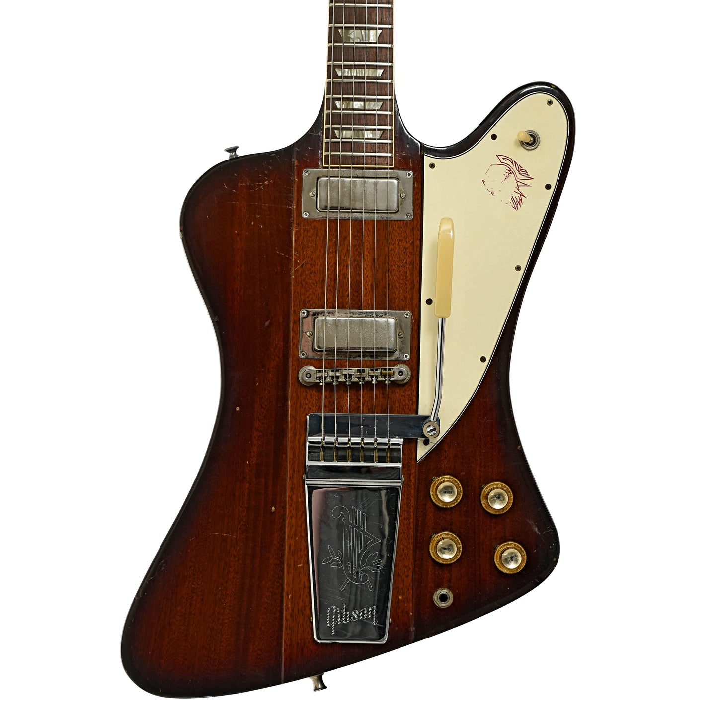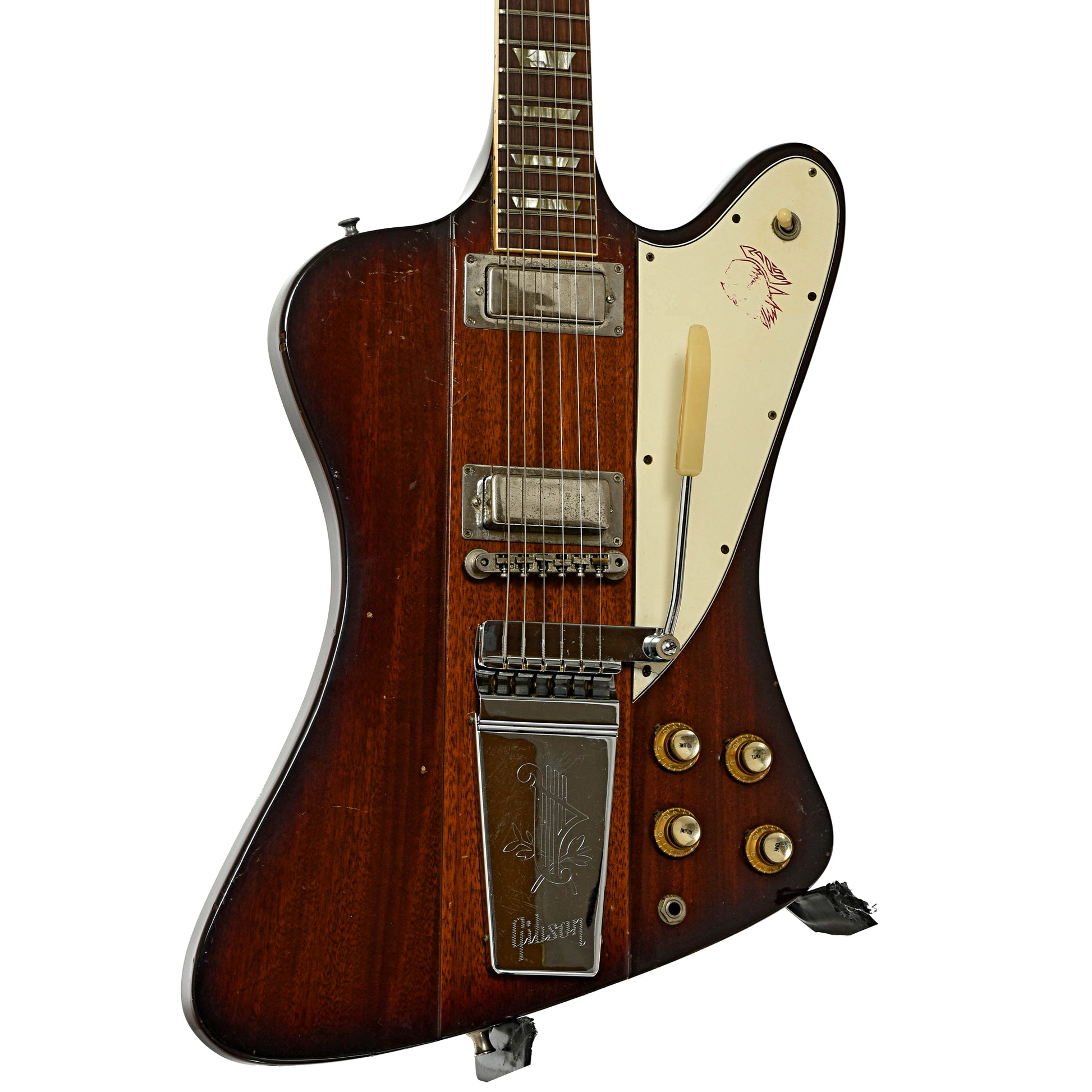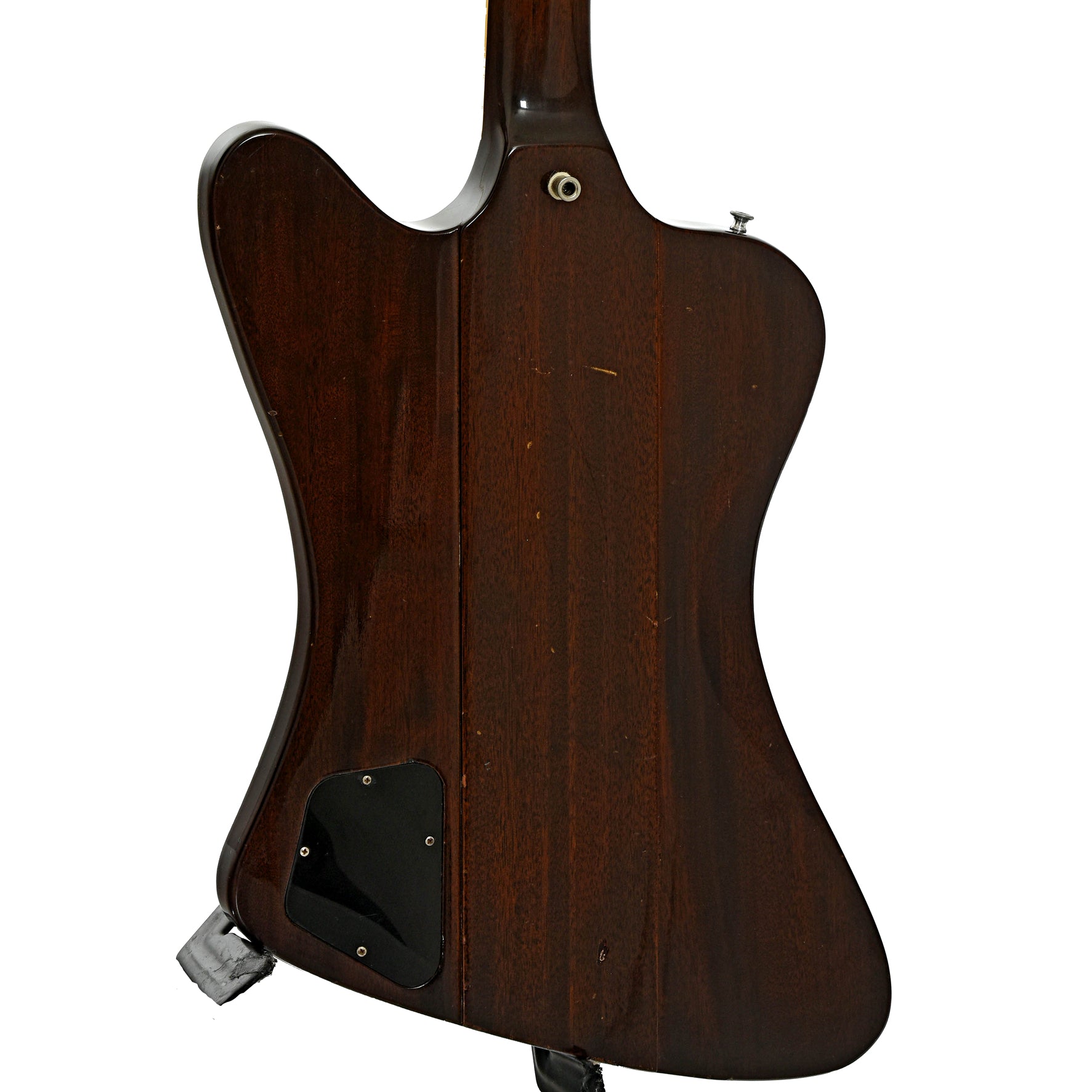 Nice player's instrument, sunburst finish, reverse body and headstock, thru body mahogany neck, mahogany body wings, bound Brazilian rosewood fretboard, 2 Firebird mini humbuckings, Vibrola tailpiece