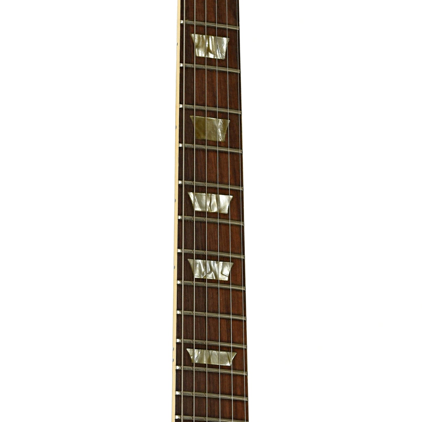 - Bound Brazilian rosewood fretboard, trapezoid inlays