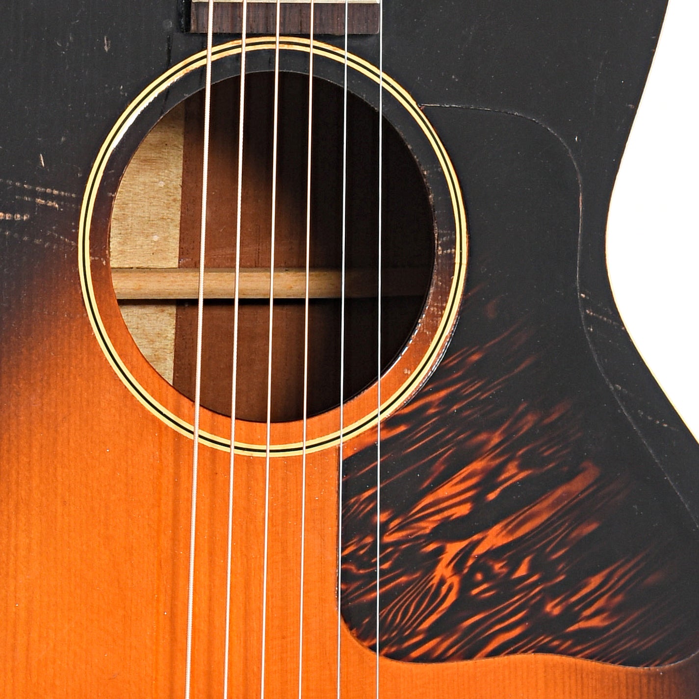 A cool 1930s Gibson, this HG-00 Hawaiian Guitar has a sunburst finish spruce top, mahogany back and sides, and a 12-fret mahogany neck. It has a "V" profile neck, a tall nut for lap style slide playing. Other features include a firestripe pickguard, Brazilian rosewood fingerboard and bridge, and 3-on-a-plate tuners. Classic looks, mellow tone!