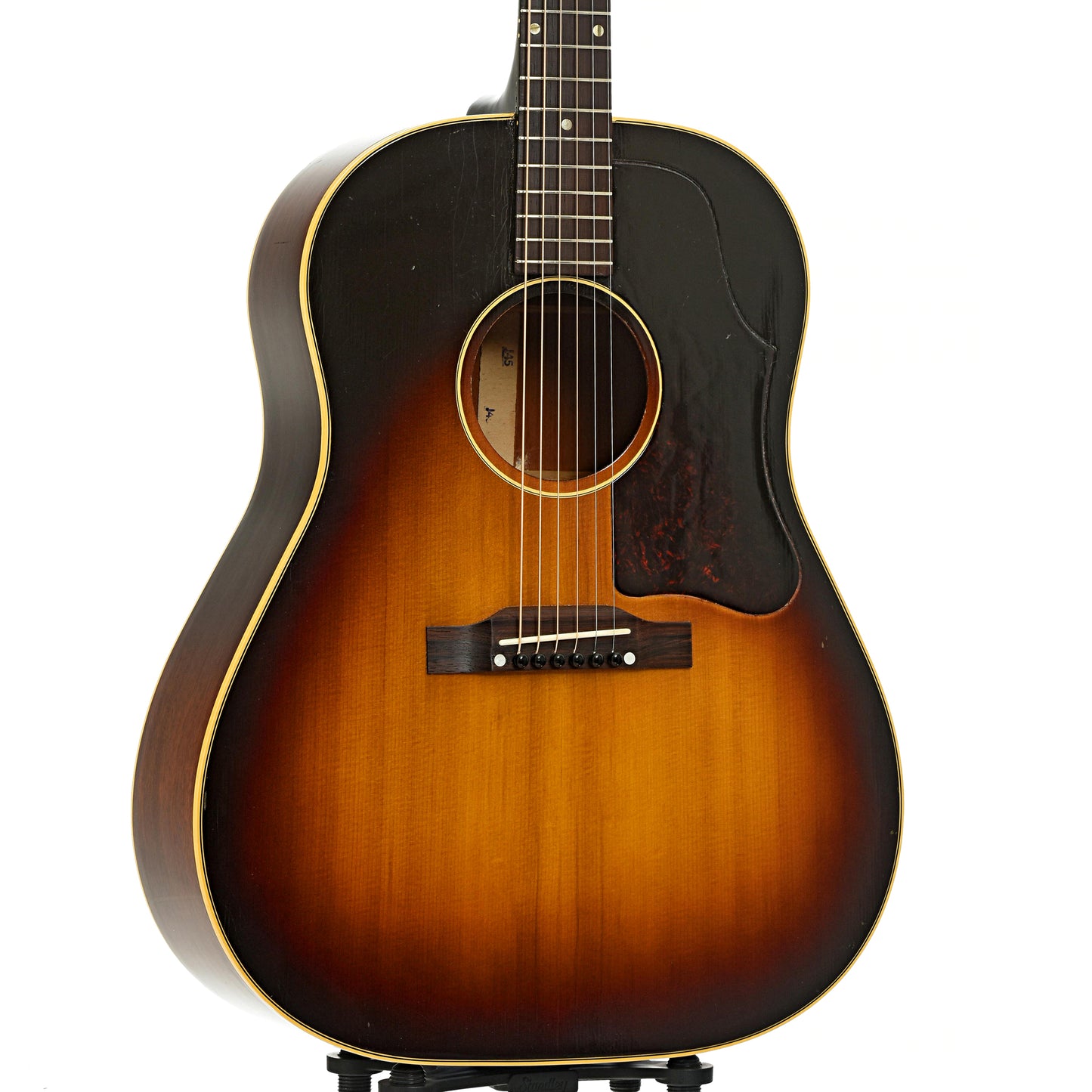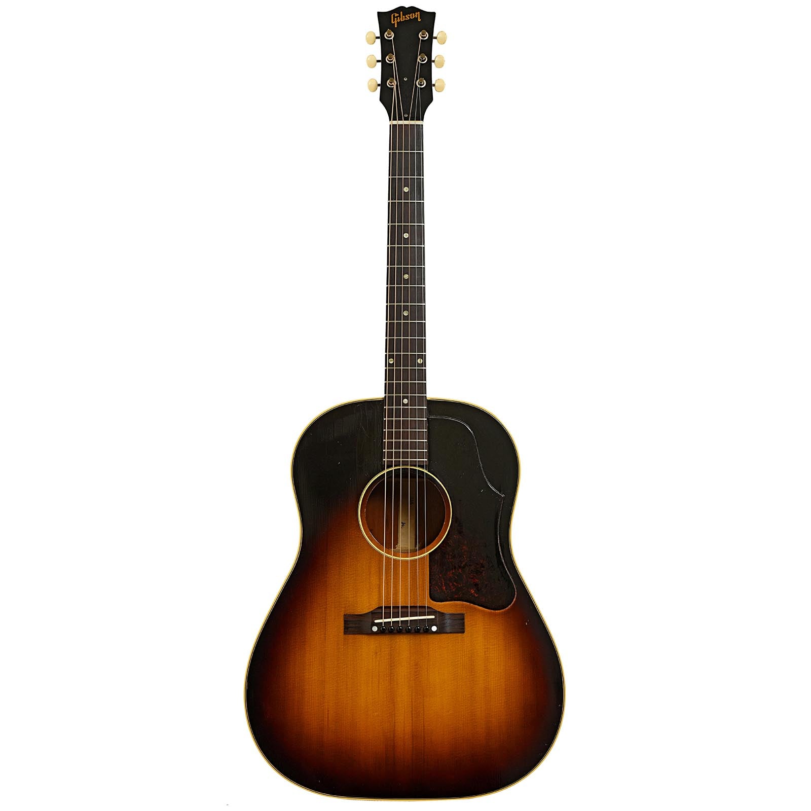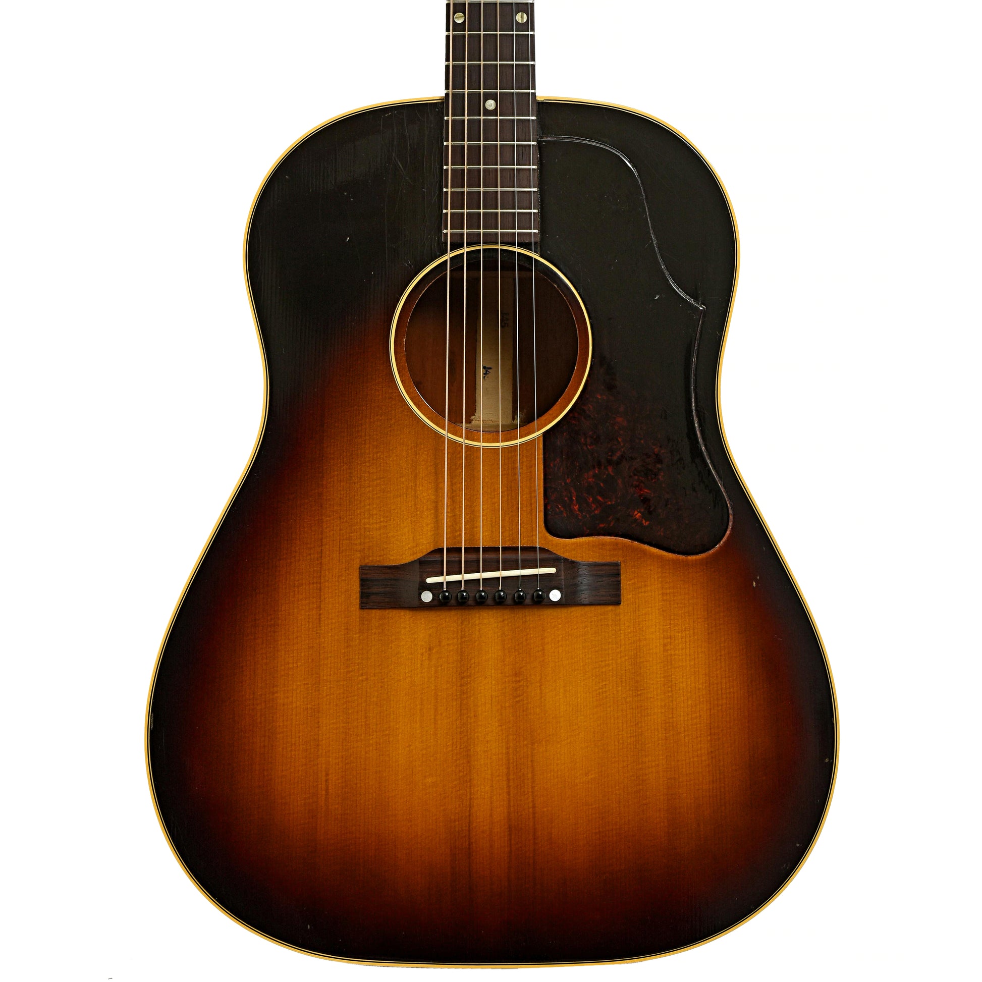The J-45 is a popular, workhorse model of many years! Features on this beautiful, shiny 1956 include a slope shouldered body of spruce top with a sunburst finish and dark finished mahogany back and sides. It has a Brazilian rosewood fingerboard and bridge, with 3-on-a-plate tuners with white buttons. Bright sound, a gem! Hard shell case. Made in Kalamazoo, MI. On consignment.