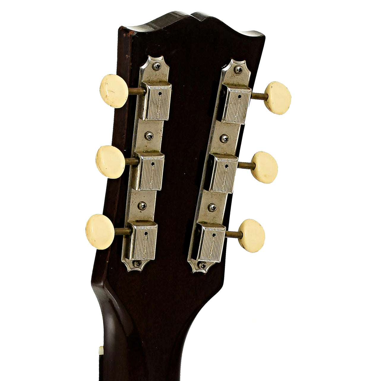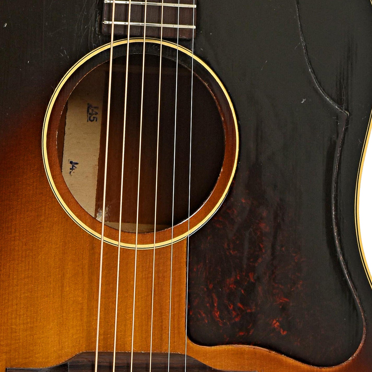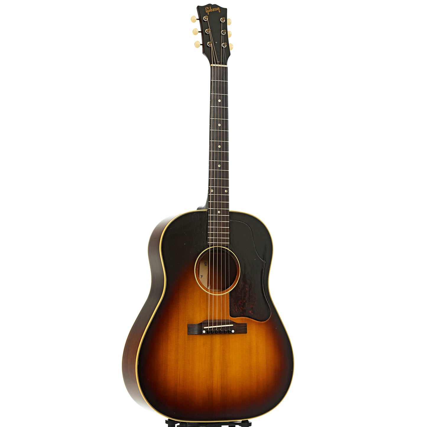 The J-45 is a popular, workhorse model of many years! Features on this beautiful, shiny 1956 include a slope shouldered body of spruce top with a sunburst finish and dark finished mahogany back and sides. It has a Brazilian rosewood fingerboard and bridge, with 3-on-a-plate tuners with white buttons. Bright sound, a gem! Hard shell case. Made in Kalamazoo, MI. On consignment.