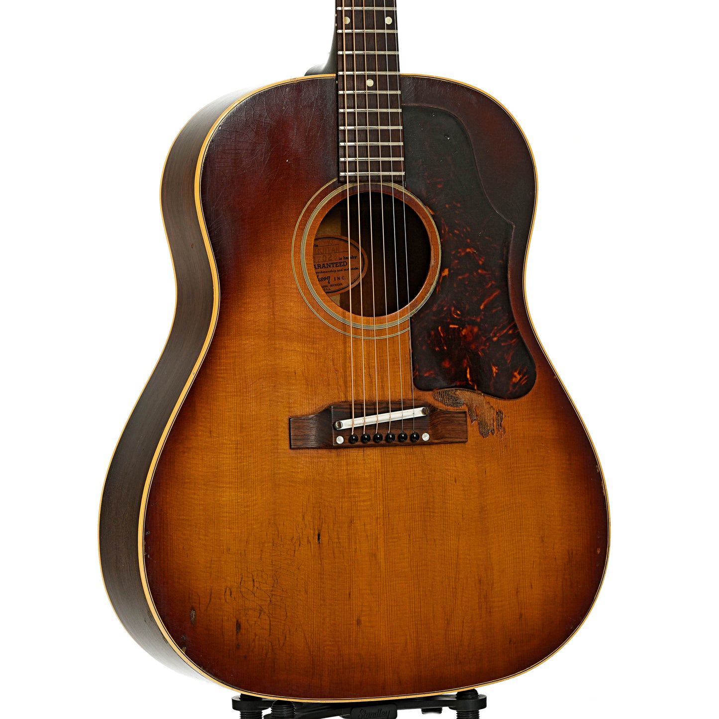 This '63 J-45 has been well-loved its whole life by players and their songs, and now brings all of that character to today, with its slope-shouldered body of sunburst finished, X-braced spruce top and mahogany back and sides. It has a Brazilian rosewood fingerboard and belly bridge, tortoise plastic pickguard, and Kluson Deluxe 3-on-a-strip tuners. Period faux leather brown hard shell case. Made in Kalamazoo, USA.