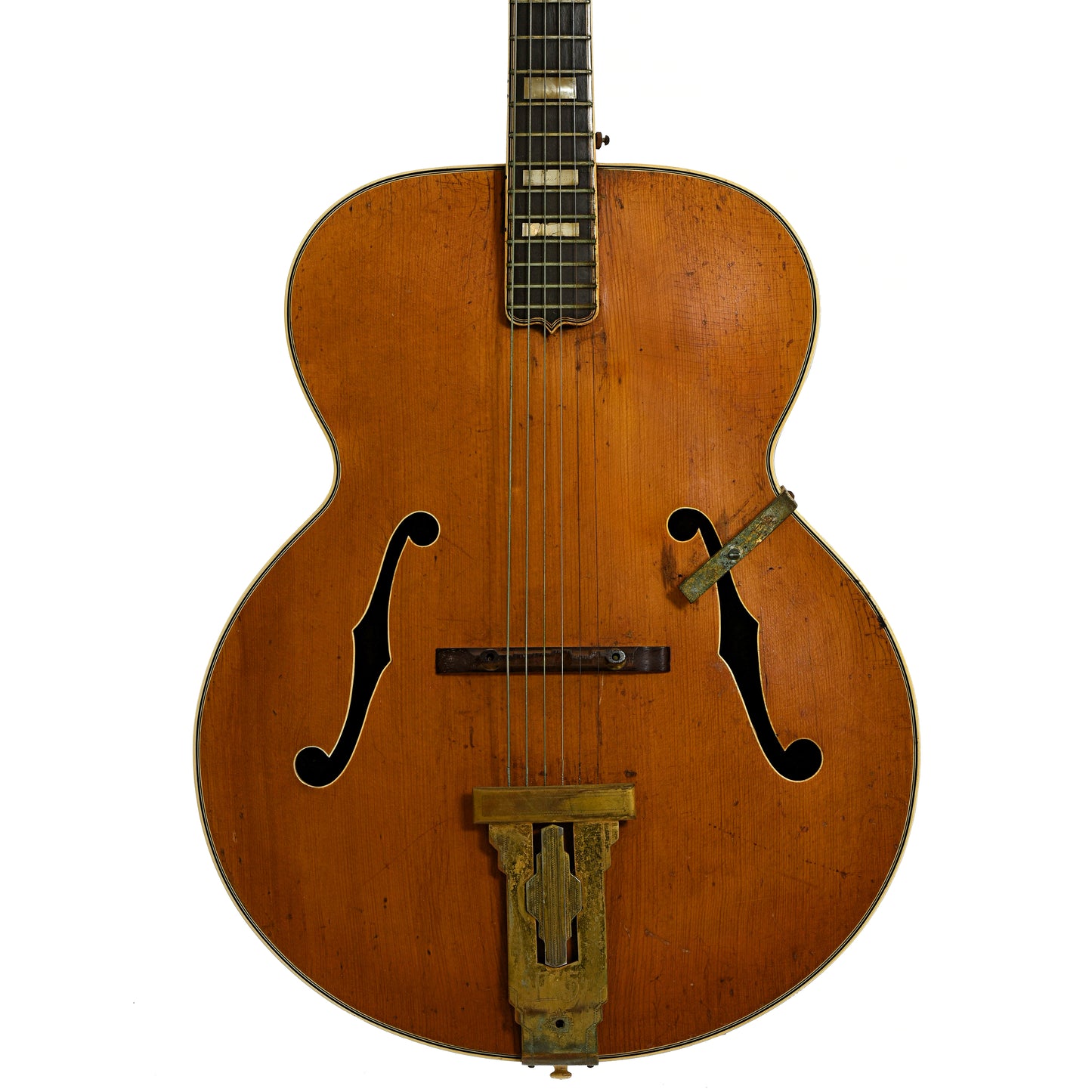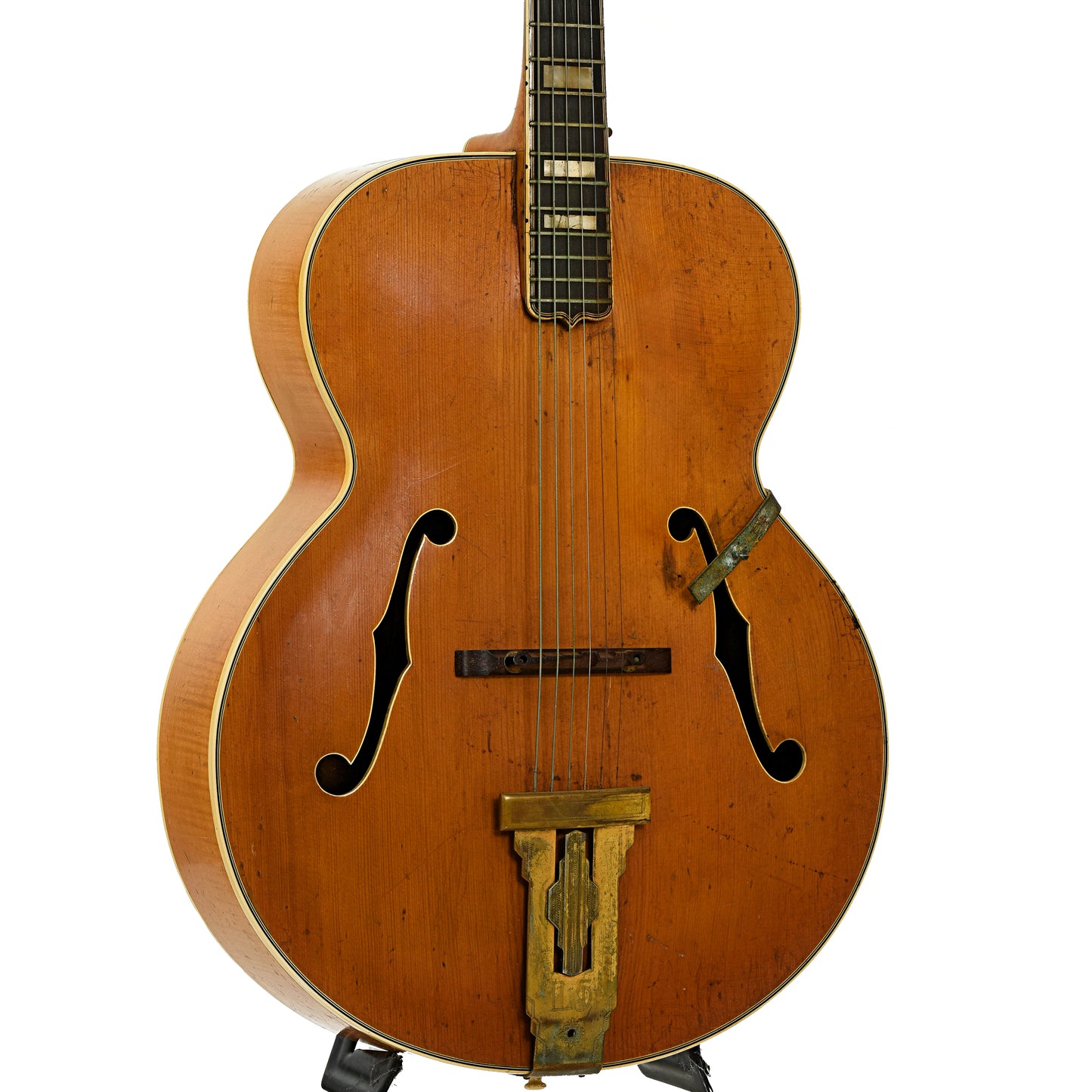 Condition Notes: Extra holes drilled for for strap buttons, previous refret, inlays cracked, stinger is delaminating, etc. Needs refret, humidification, cleaning, a pickguard, new nut, etc. (This item is sold As-Is)