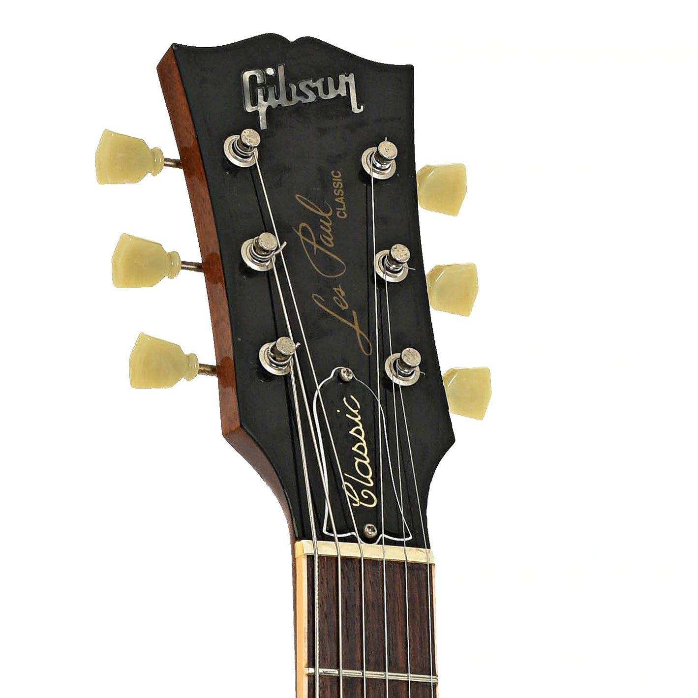 - Black peghead overlay features logo inlay and model decal