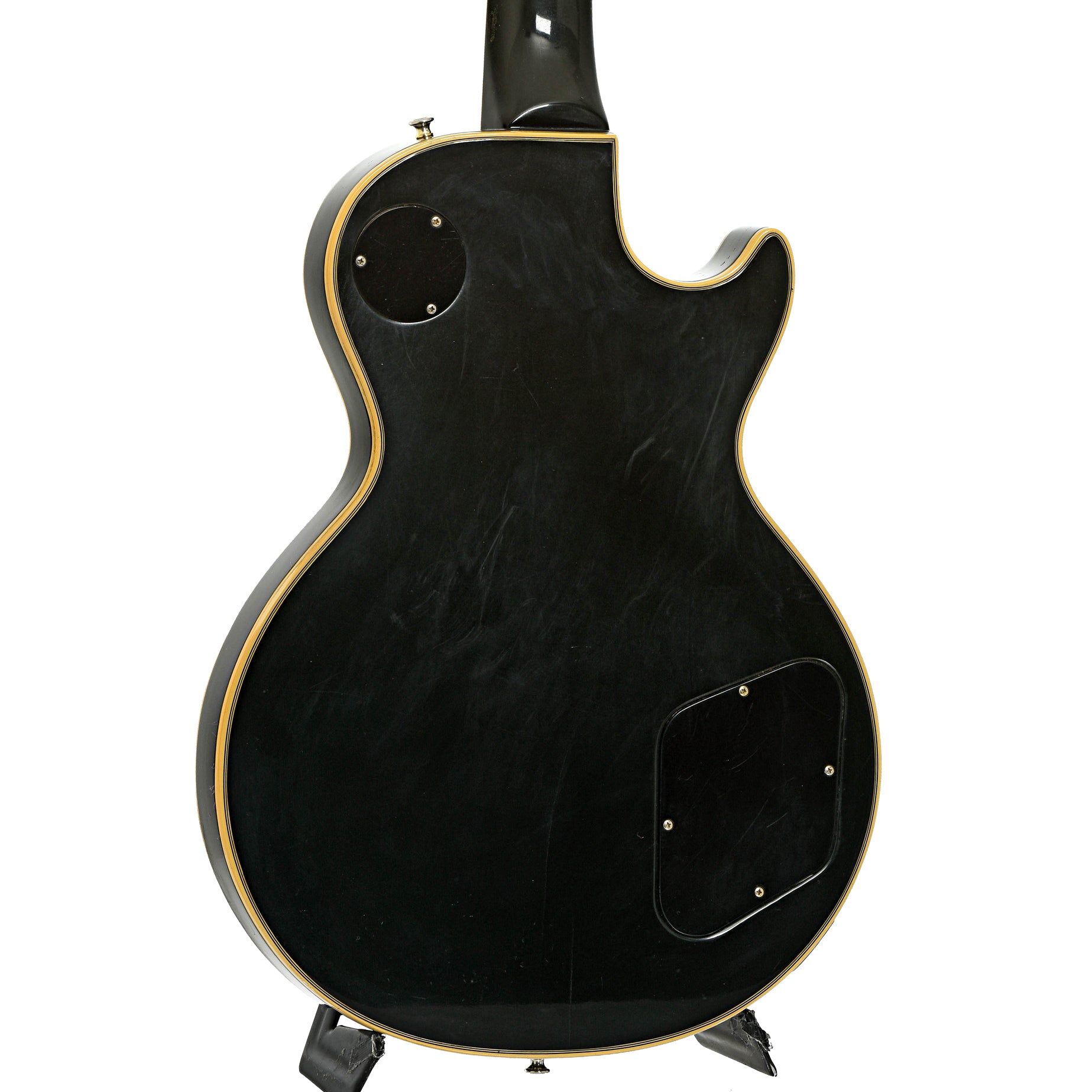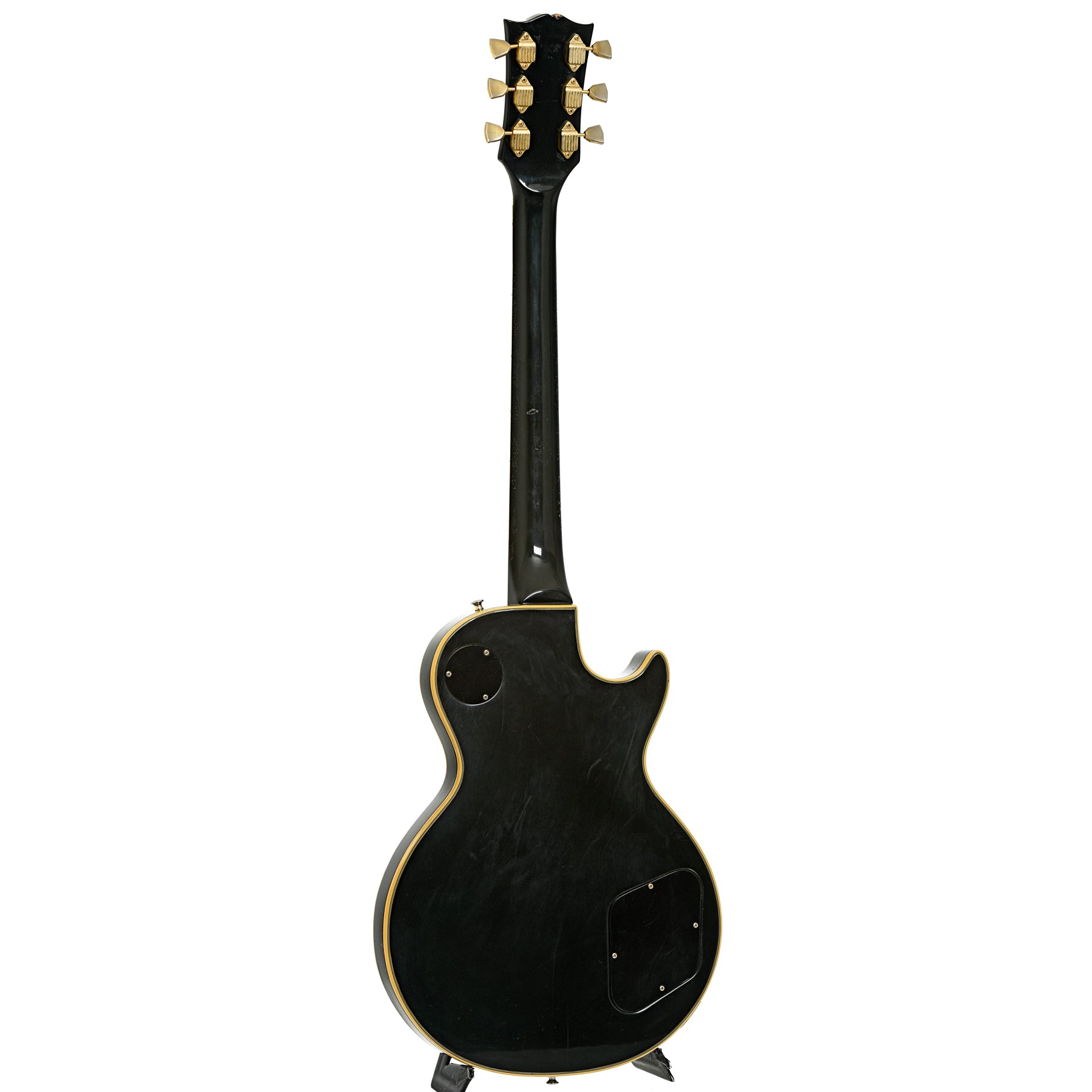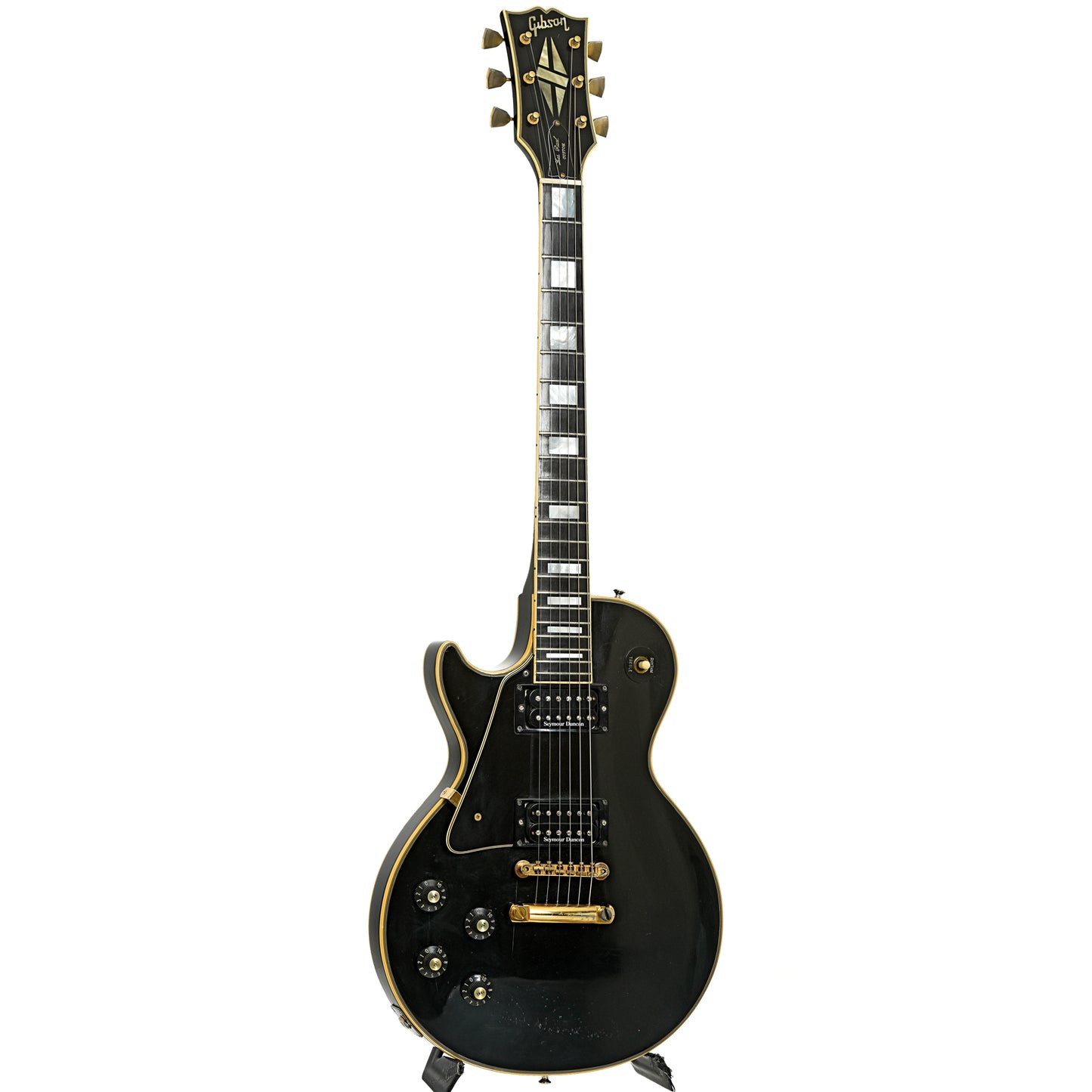 Lefties can have nice stuff, too, like this 1972 Les Paul Custom! It has an ebony finish on maple top and mahogany "pancake" body, and a bound ebony fingerboard on a 3-piece mahogany neck. Seymour Duncan humbucking pickups installed (JB/Jazz), a ABR-1 T-O-M bridge and stop tailpiece. Gold hardware! Original hard shell case. Made in Kalamazoo, USA. On consignment.