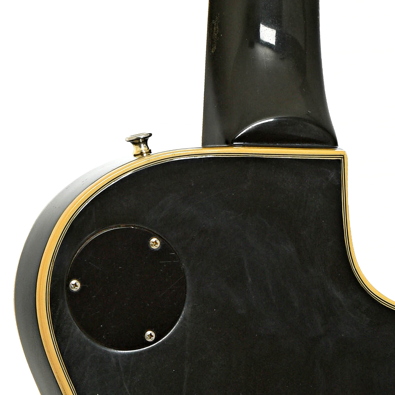 - Bound, purfled black peghead overlay, pearl split diamond and logo inlays