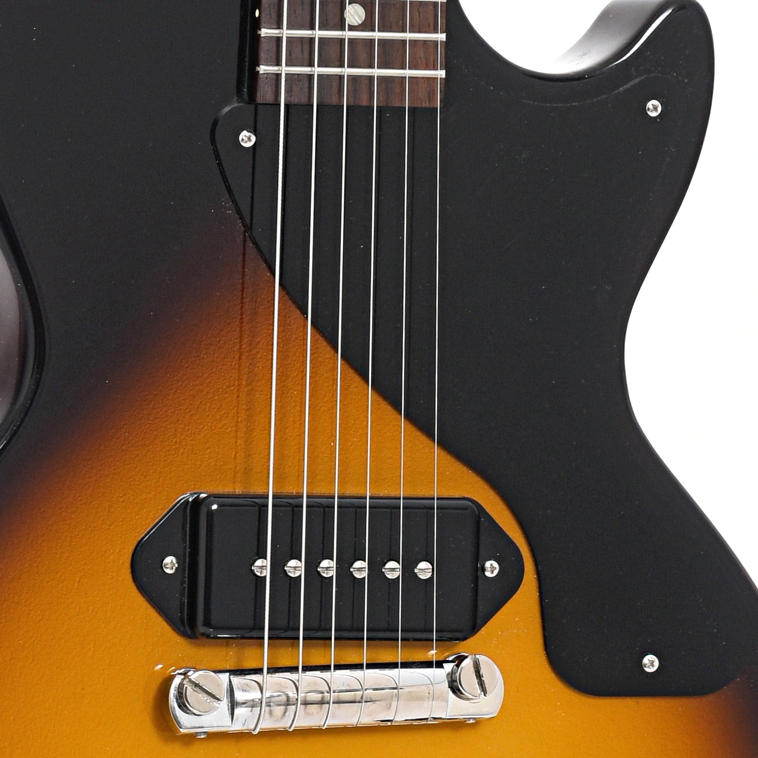 Sunburst finish, single cutaway mahogany body, mahogany neck, rosewood fretboard, 1 dog ear P90 pickup, EC