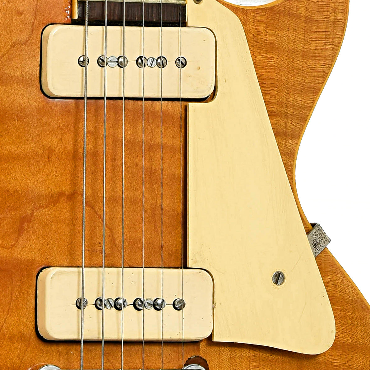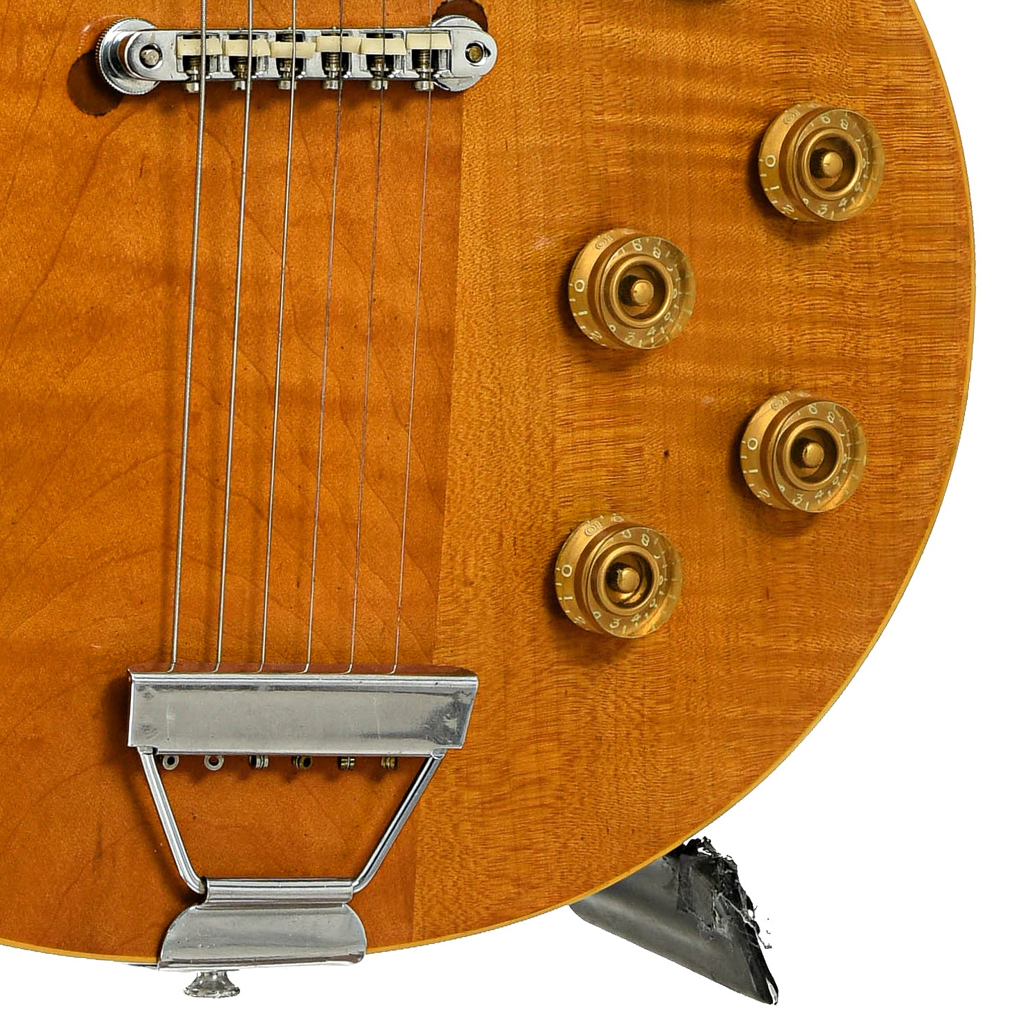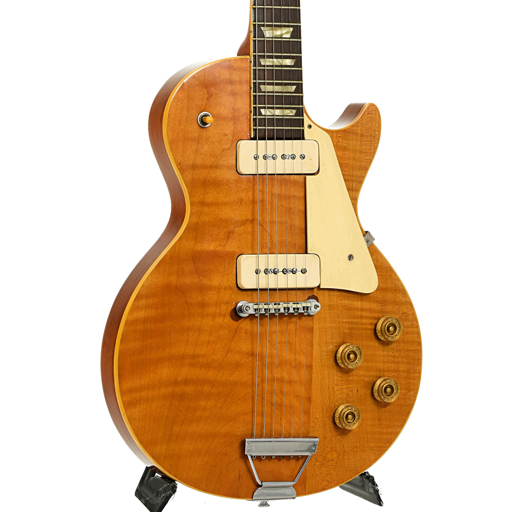 Good player's guitar with a great vibe, entire instrument refinished natural, nice looking bound maple top, mahogany body and neck, bound Brazilian rosewood fretboard, trapezoid inlays, original P90 at bridge (new lead), 60's P90 at neck (likely c.1968), short trapeze tailpiece and 60's ABR-1 bridge replace original wrap-over tailpiece