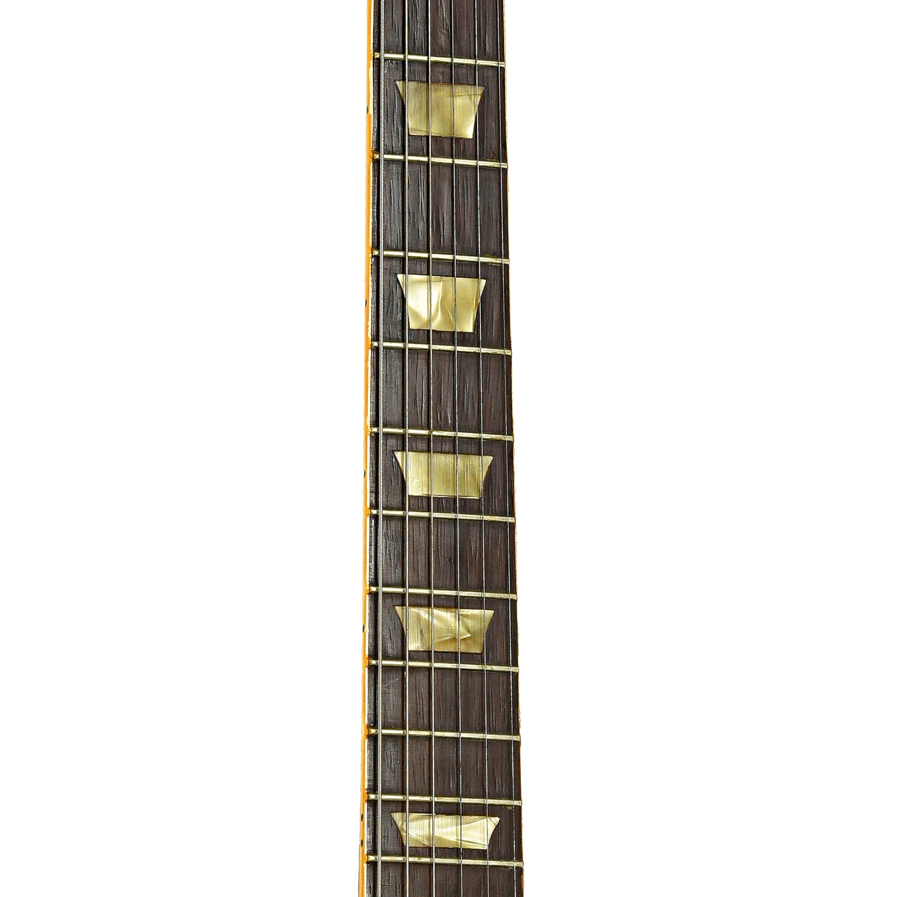 - Bound Brazilian rosewood fretboard, trapezoid inlays