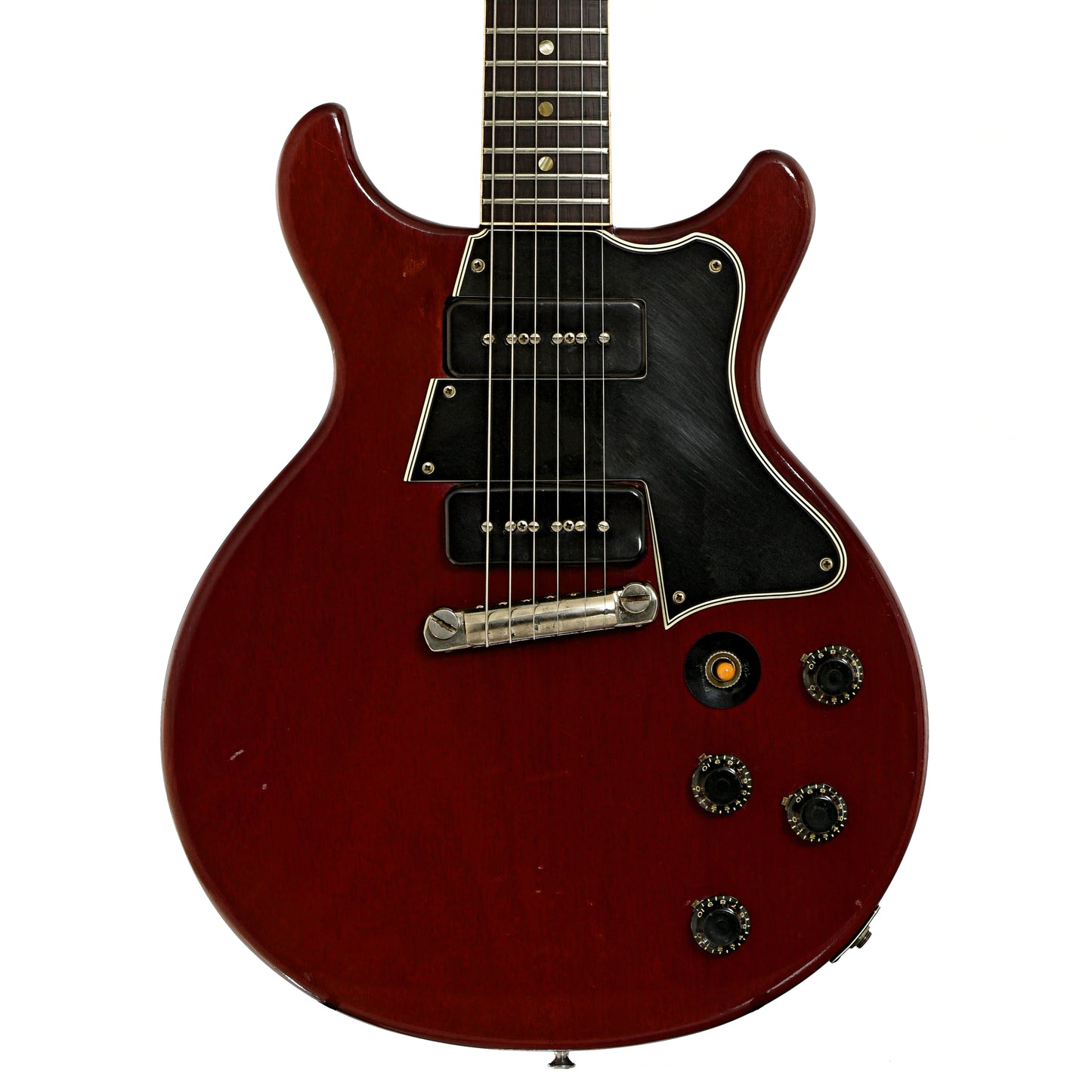 Great player's instrument with killer tone and vibe, cherry refinish and new serial number applied by Gibson in 1964, double cutaway, all electronics, hardware and plastic parts appear original, newer case