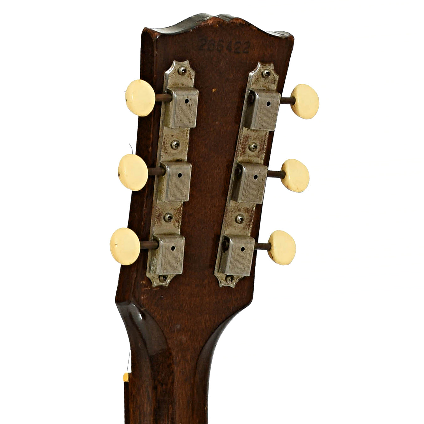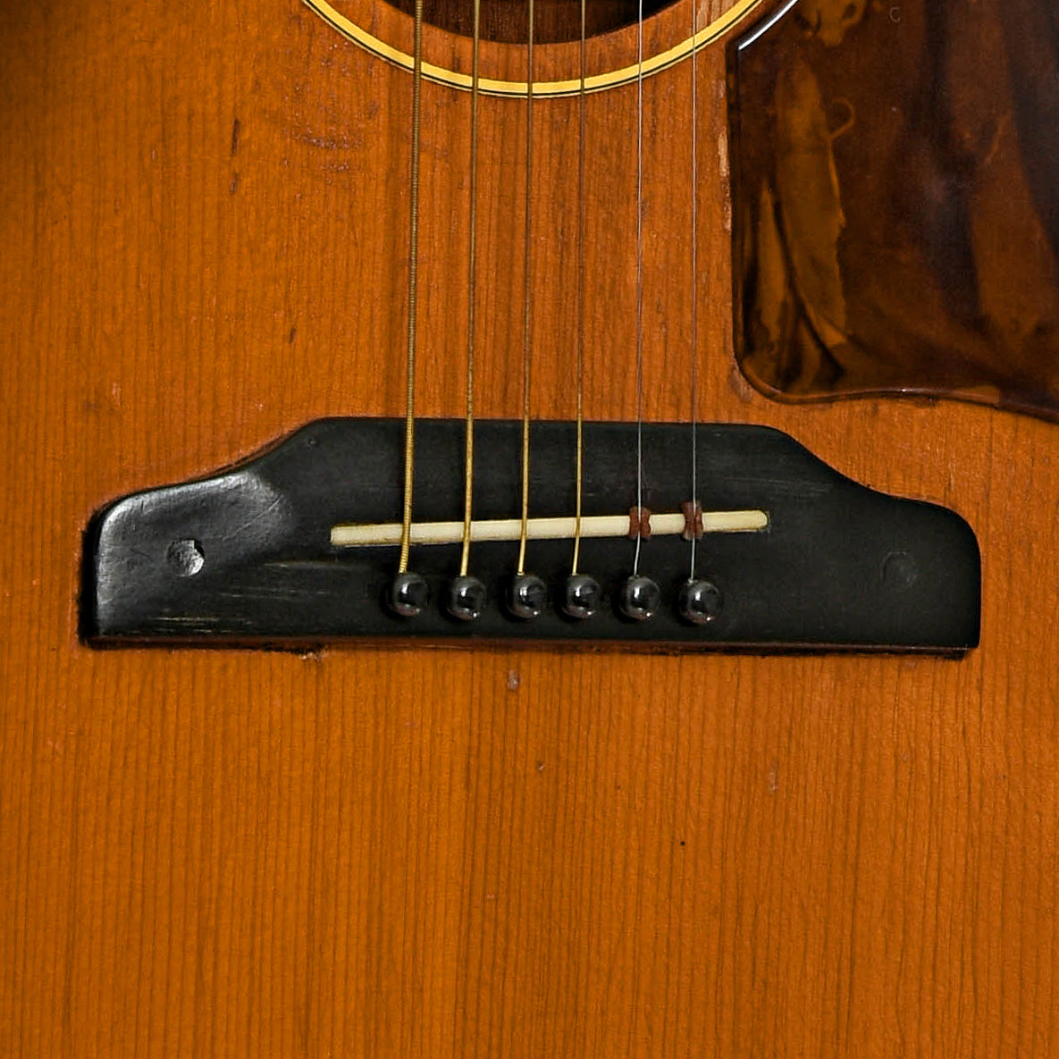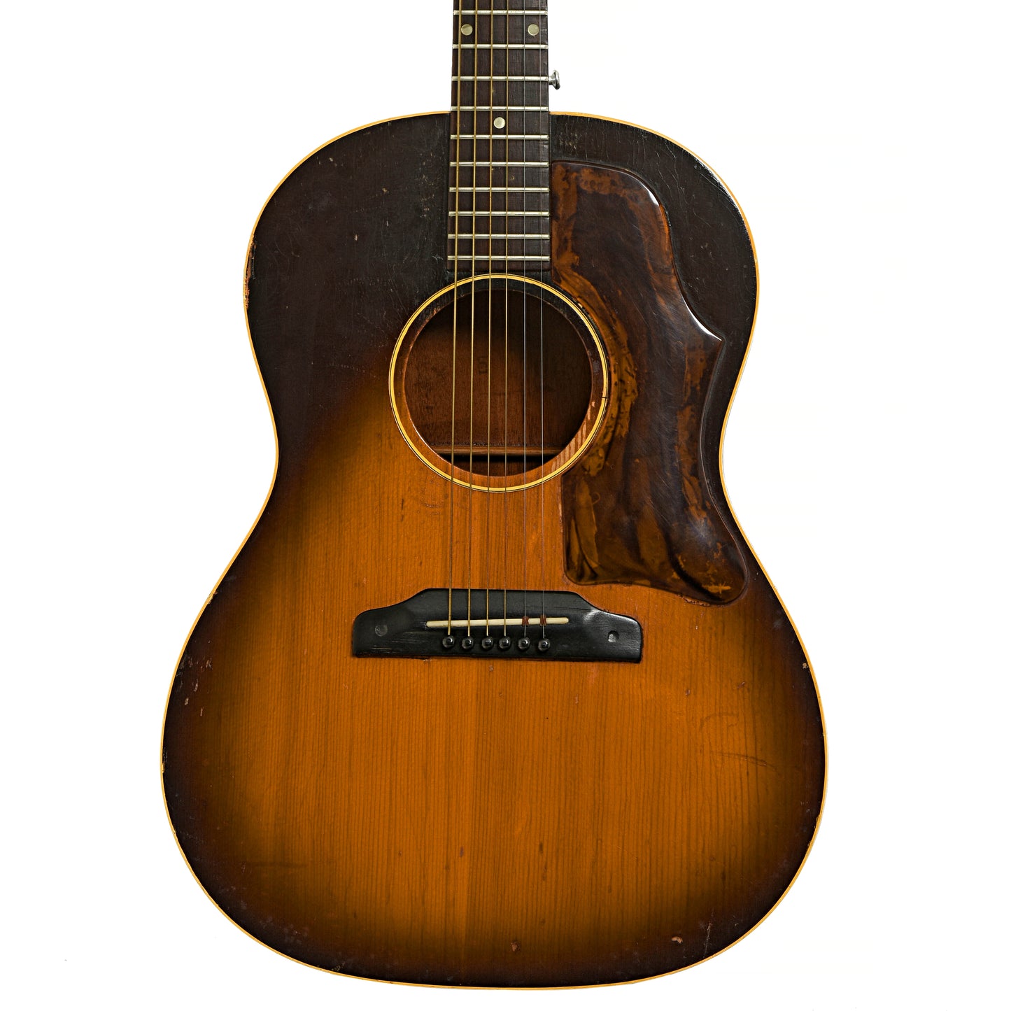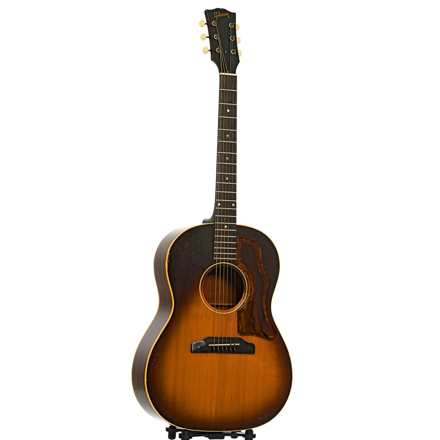 This LG-1 has the iconic features of gloss sunburst finish on ladder-braced spruce top, mahogany back, sides and 14-fret neck. This vintage Gibson has a Brazilian rosewood fingerboard and 3-on-a-plate Kluson Deluxe tuners. Period chipboard case. Made in USA.