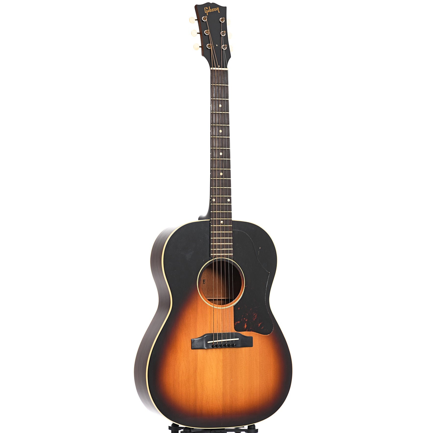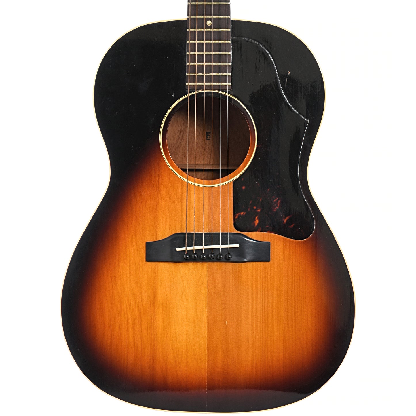 Shiny finish on this LG-1, gloss sunburst on ladder braced spruce top. It has mahogany, back, sides and neck. Features include a Brazilian fingerboard and Kluson Deluxe tuners. Has some issues but, with work, can be returned to its former glory, plays okay! (needs heat press neck, fret level, bridge plate needs patch, glue brace, new bridge, glue/cleat top cracks, plays okay - sold AS-IS)