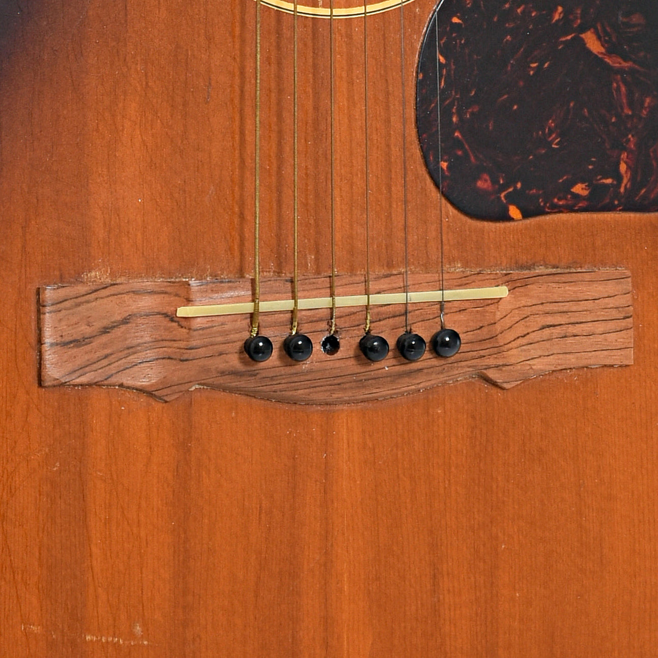 Great project guitar with good potential. 00-size body. Sunburst finished ladder-braced top. Mahogany back sides and neck. Replacement bridge.