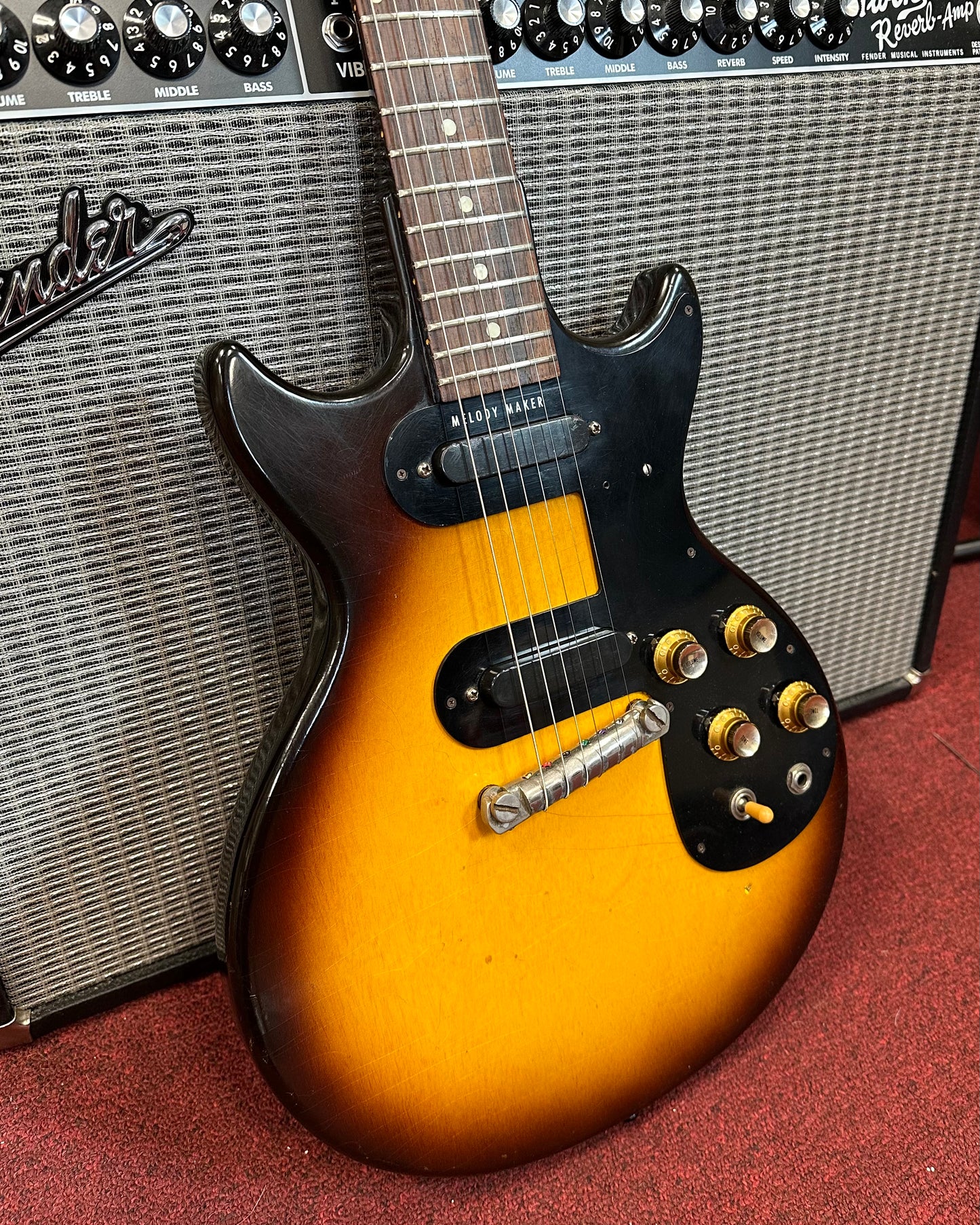 • 1 ply black pickguard reads "MELODY MAKER" (two extra screw holes)