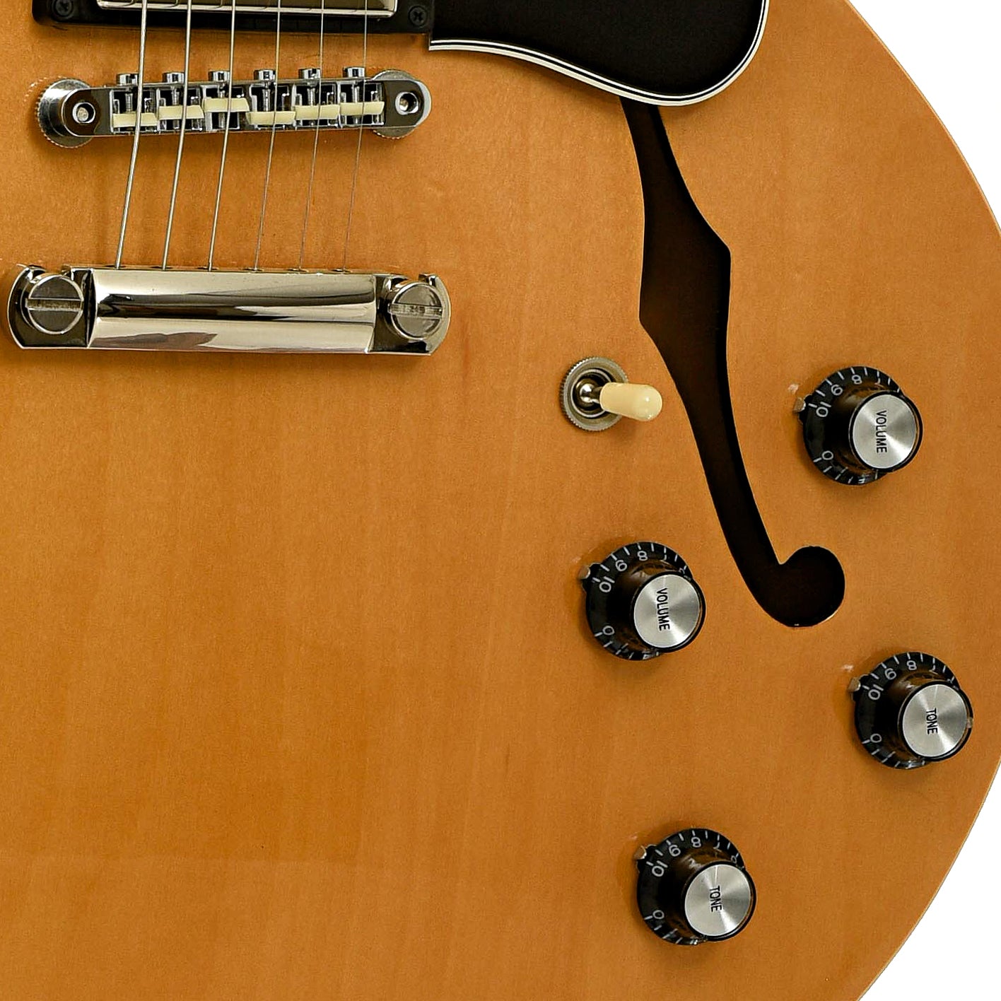 Big, bluesy tones all day with this ES-335 Gloss in a natural finish! Features include a semi-hollow double bound maple body with center block and a 22-fret bound rosewood fingerboard on a mahogany set neck. Equipped with dual humbucking pickups and Tone Pros locking ABR-1 TOM-style bridge. Original brown hard shell case. Made in USA. On consignment.