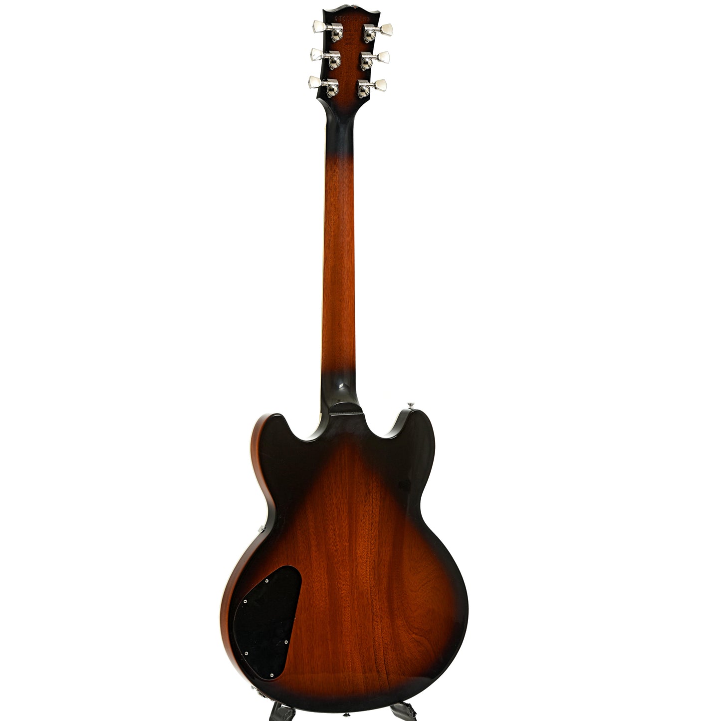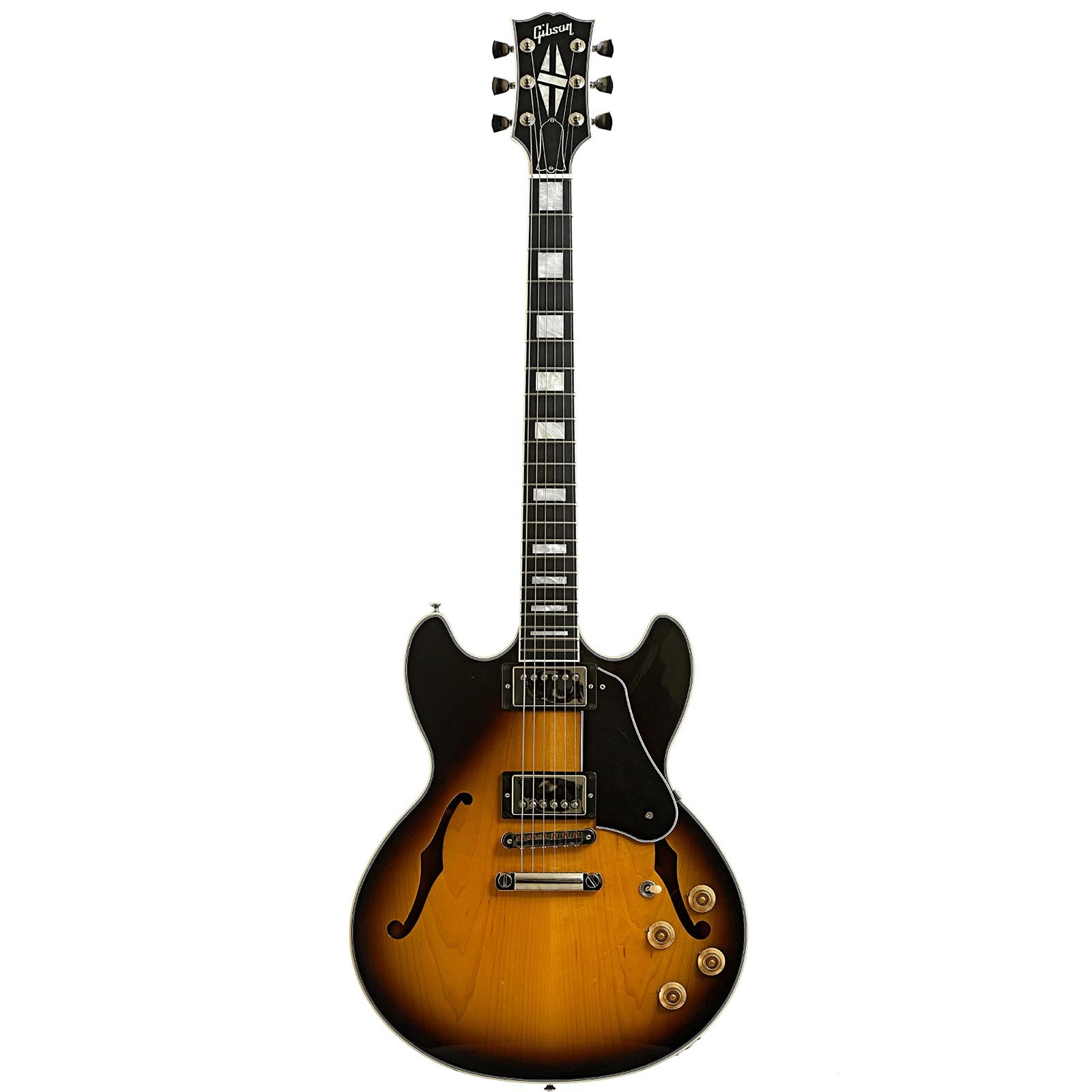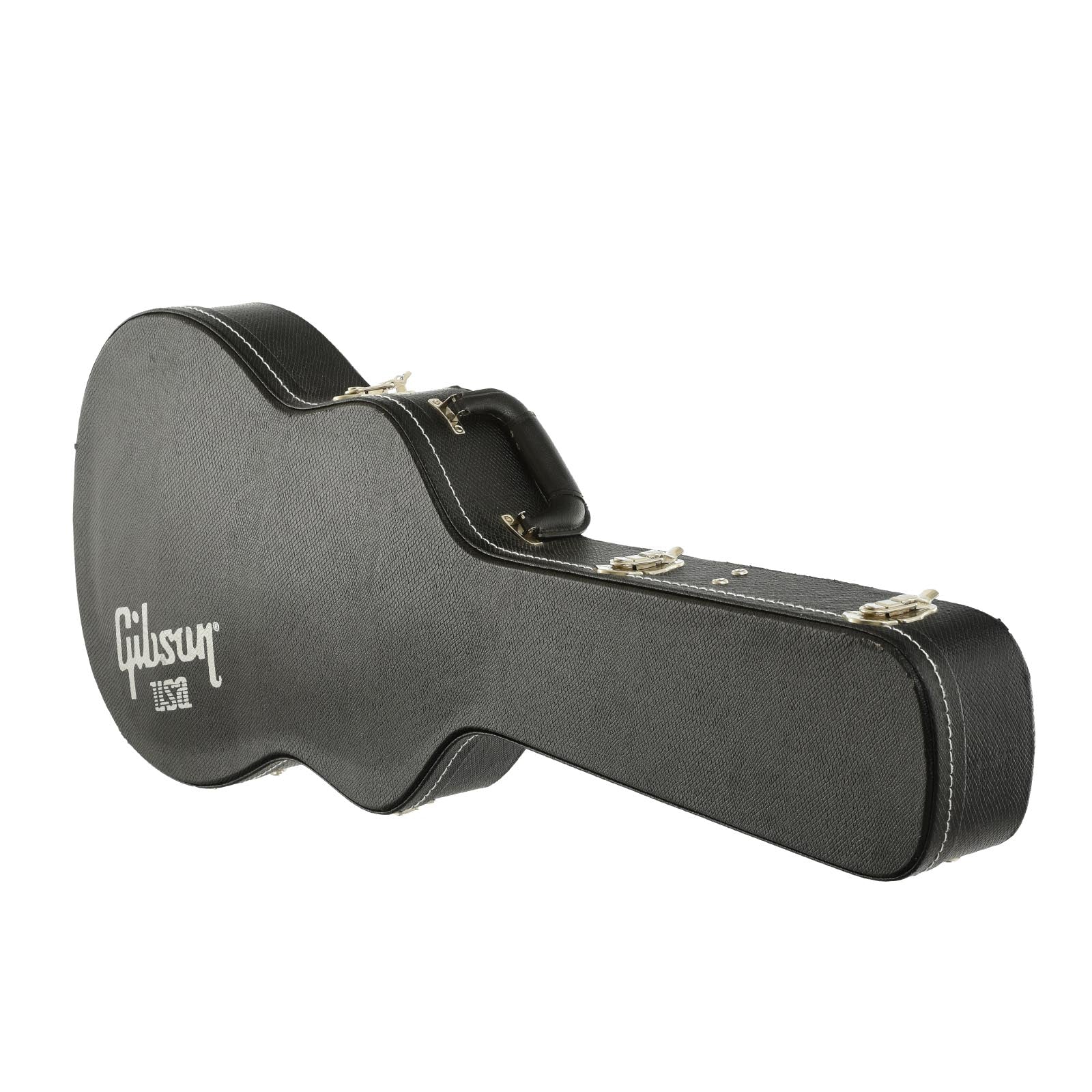 This thinline semi-hollowbody Gibson stands out with a sunburst finish and a flat, bound maple top on a chambered mahogany body. It features a Richlite fingerboard with block inlays, dual '57 Classic humbuckers, and Grover locking tuners. Includes the original hard shell case. Made in the USA.