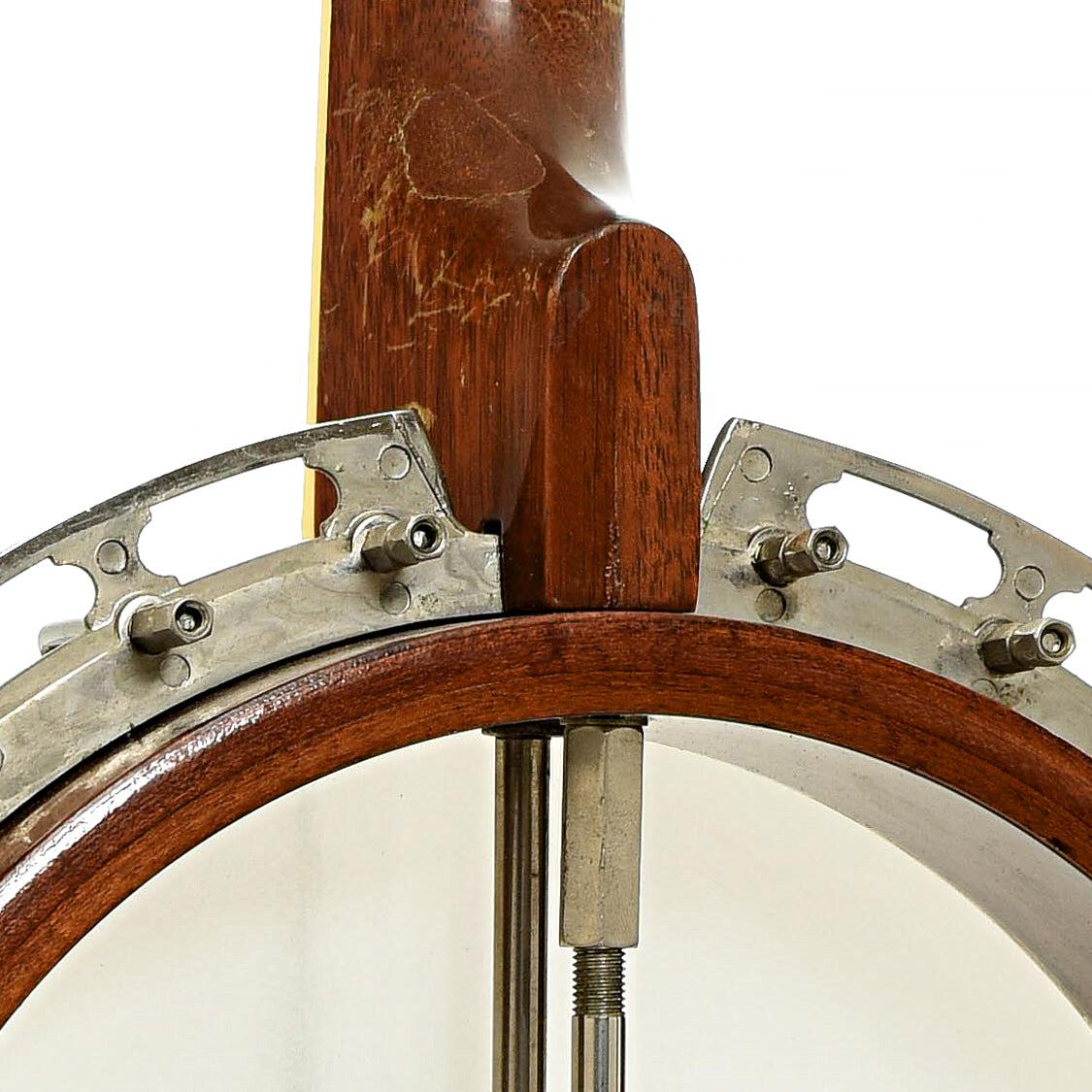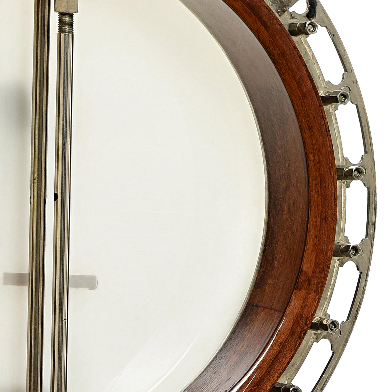 Condition Notes: Playing wear. Refret 1-4. Newer nut and tailpiece. Finish delamination neck and rim. Repaired heel crack. Case handle rough.