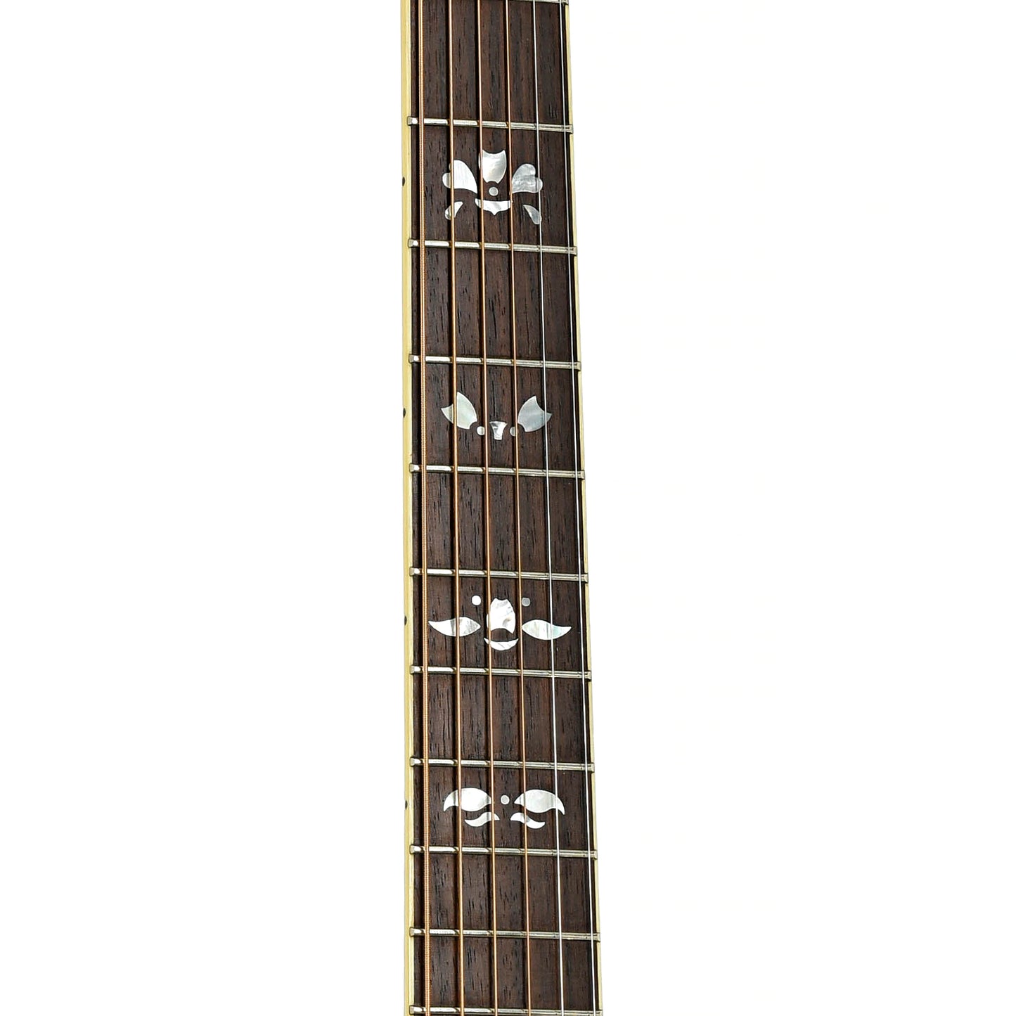 - Bound headstock features logo inlay and "Dylan's eye" decal