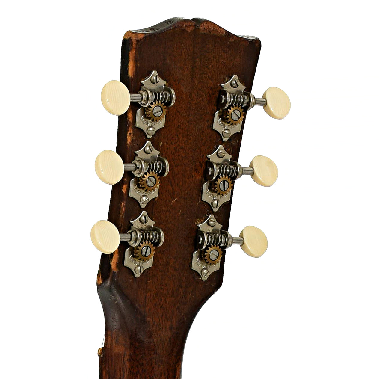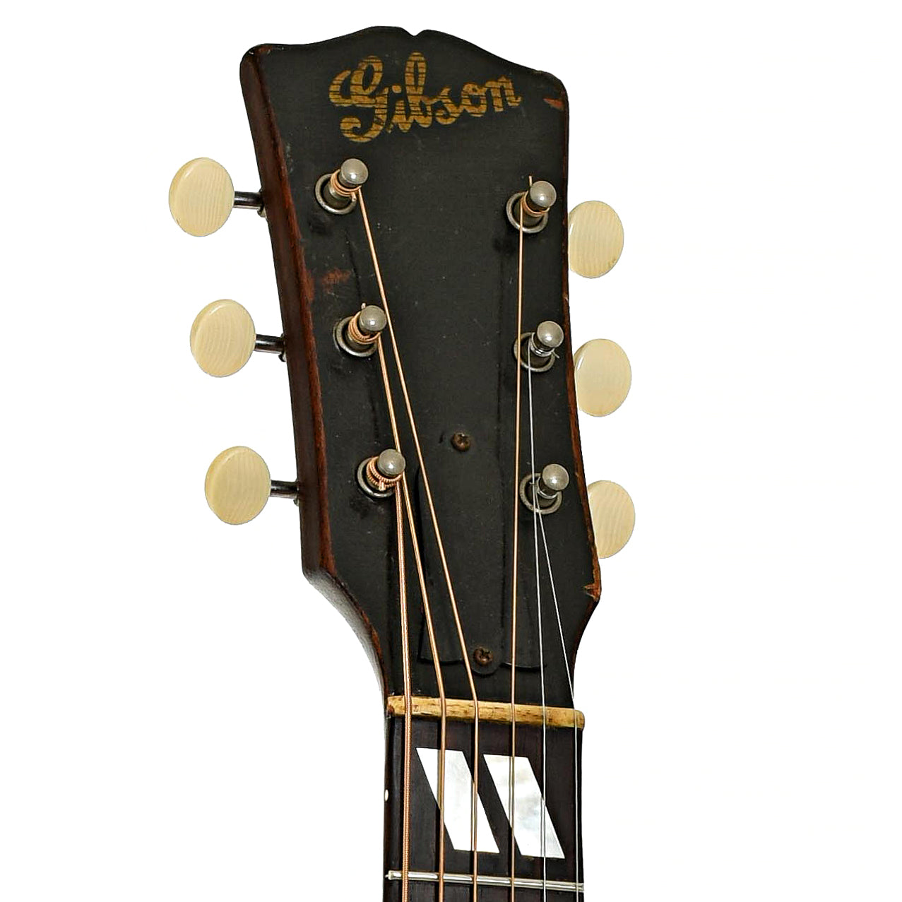 - Tapered black peghead overlay features silk-screened script "Gibson" logo