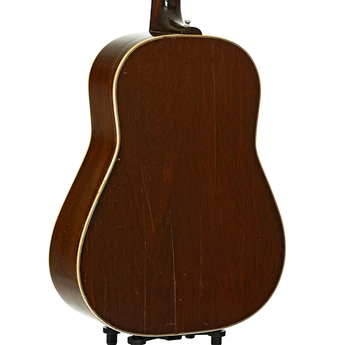This well-loved post-war Southern Jumbo features a sunburst finish on an X-braced spruce top, with mahogany back, sides, and a 14-fret neck. It has a Brazilian rosewood fingerboard with distinctive dual parallelogram inlays, a replacement rectangular bridge, and newer Waverly open-gear tuners. The peghead sports a silk-screened script "Gibson" logo. Shows years of repairs and playing wear but still plays great! Includes a TKL hard shell case. Built in Kalamazoo, USA. On consignment.