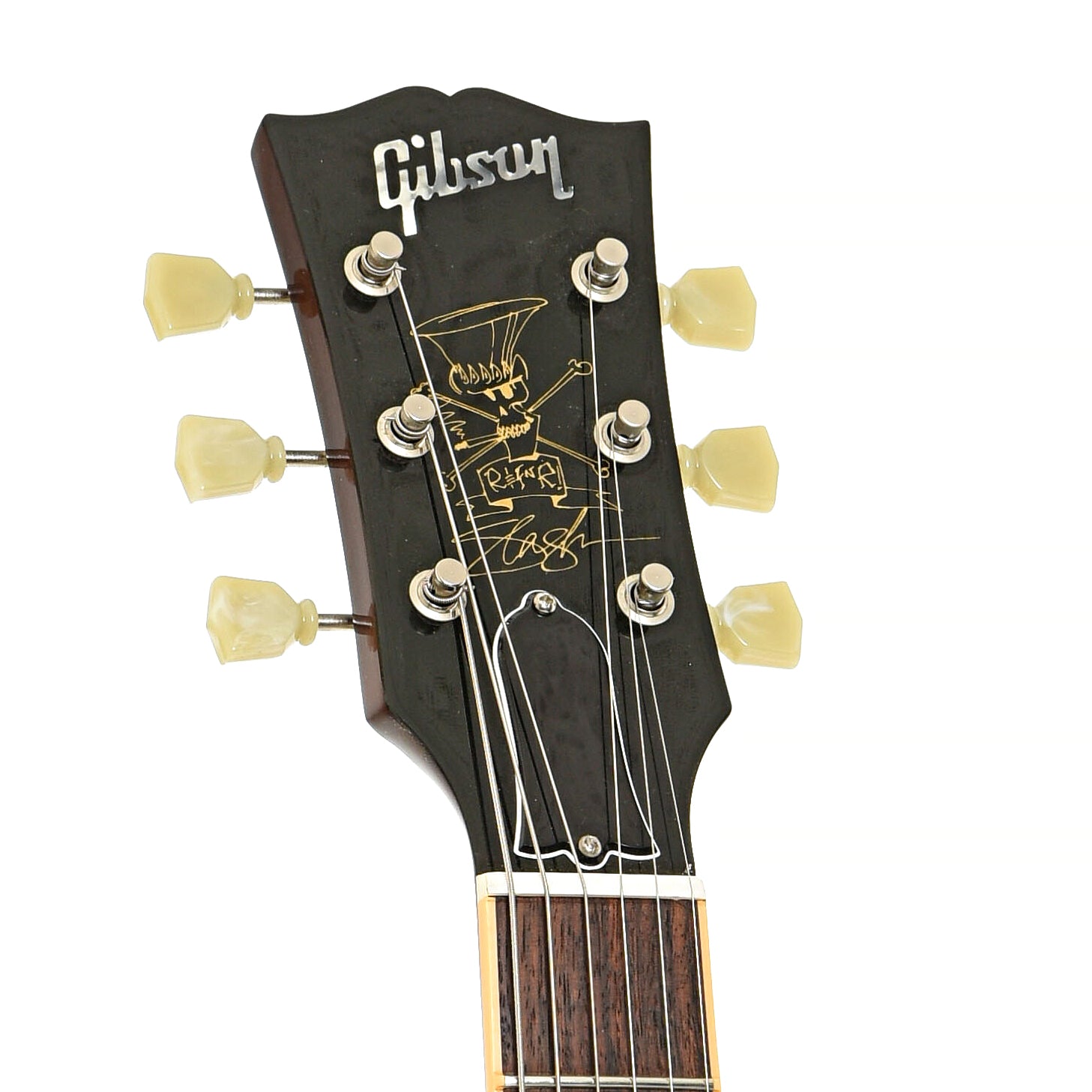 • Black peghead overlay features pearl logo inlay and Slash artwork silkscreen