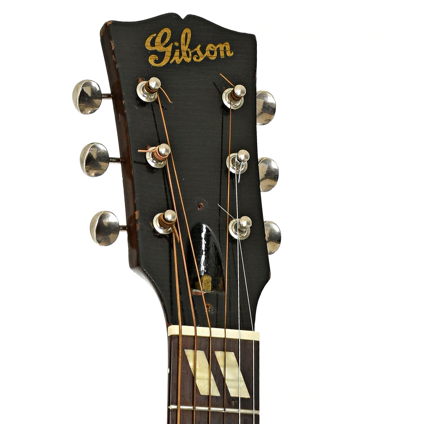 • Tapered black peghead overlay features silk-screened script "Gibson" logo