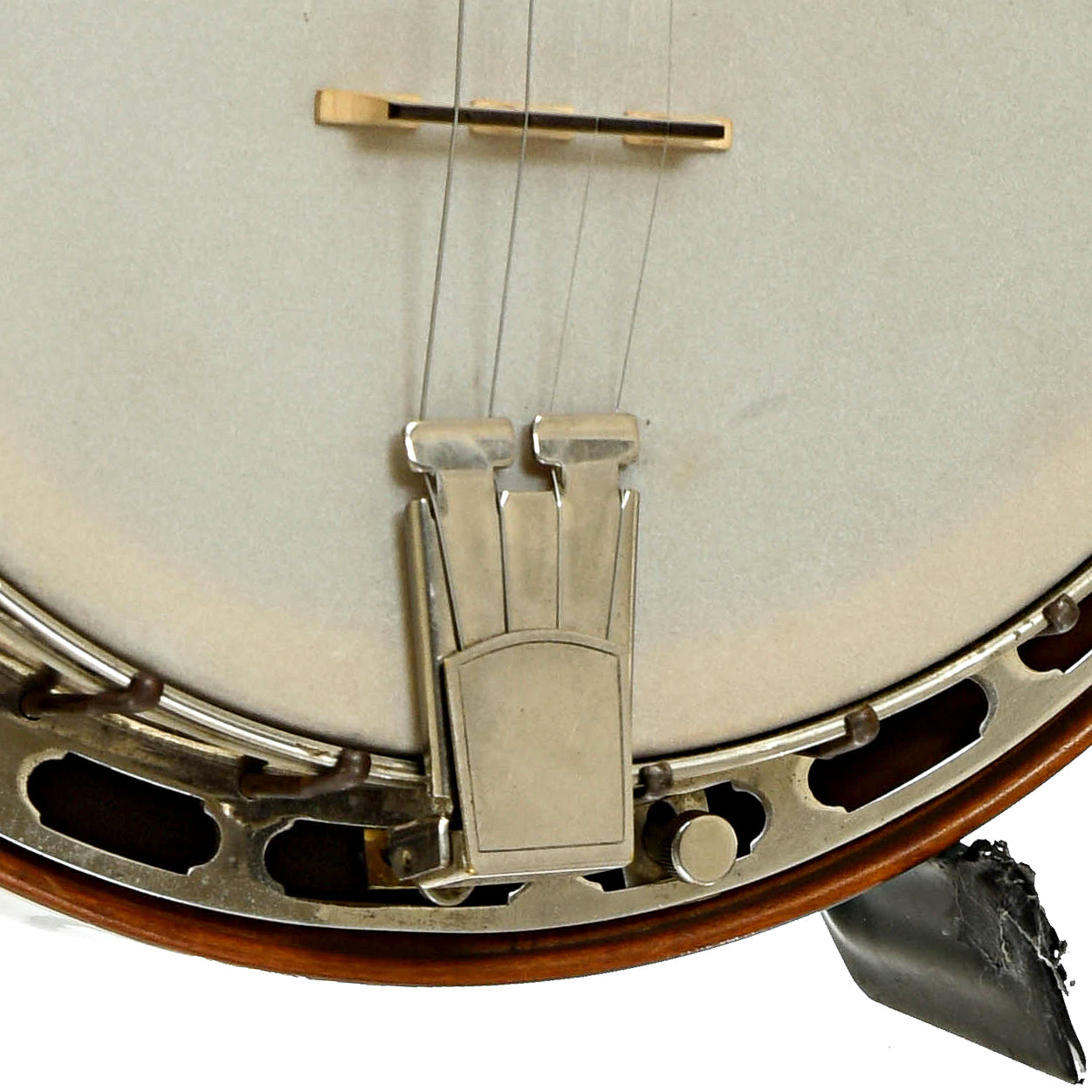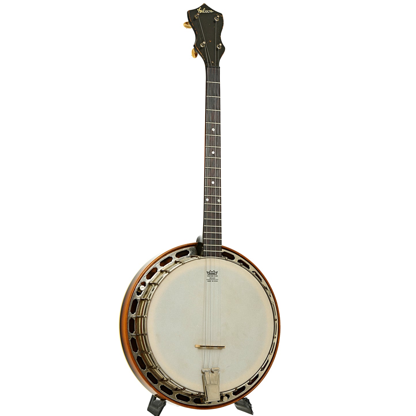 A nice 1930’s instrument, this Gibson TB-00 Tenor Banjo has a maple neck and white bound resonator, both in a handsome sunburst finish. Other features include a Brazilian rosewood fingerboard, one-piece flange, single coordinator rod, Grover Presto tailpiece and "pancake" tuners. Loud and proud! TKL hardshell case. Made in Kalamazoo, USA. On consignment.