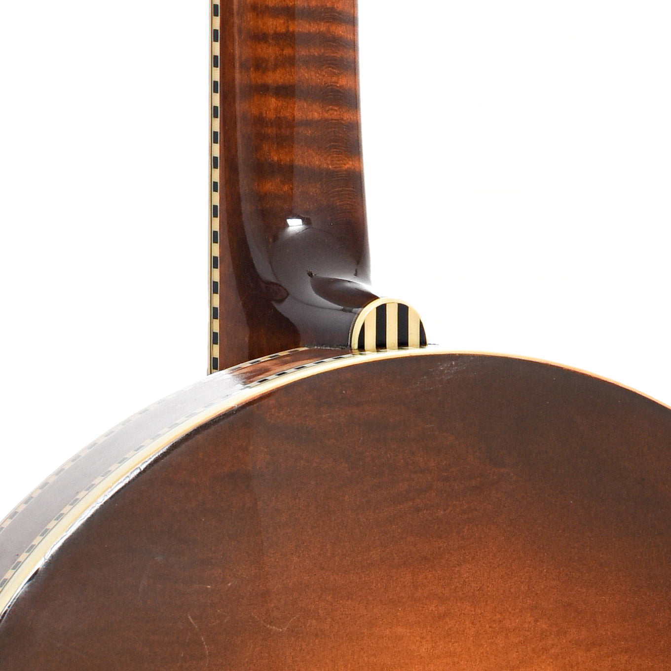 - Bold checkerboard purfling on headstock, neck, fingerboard, and resonator