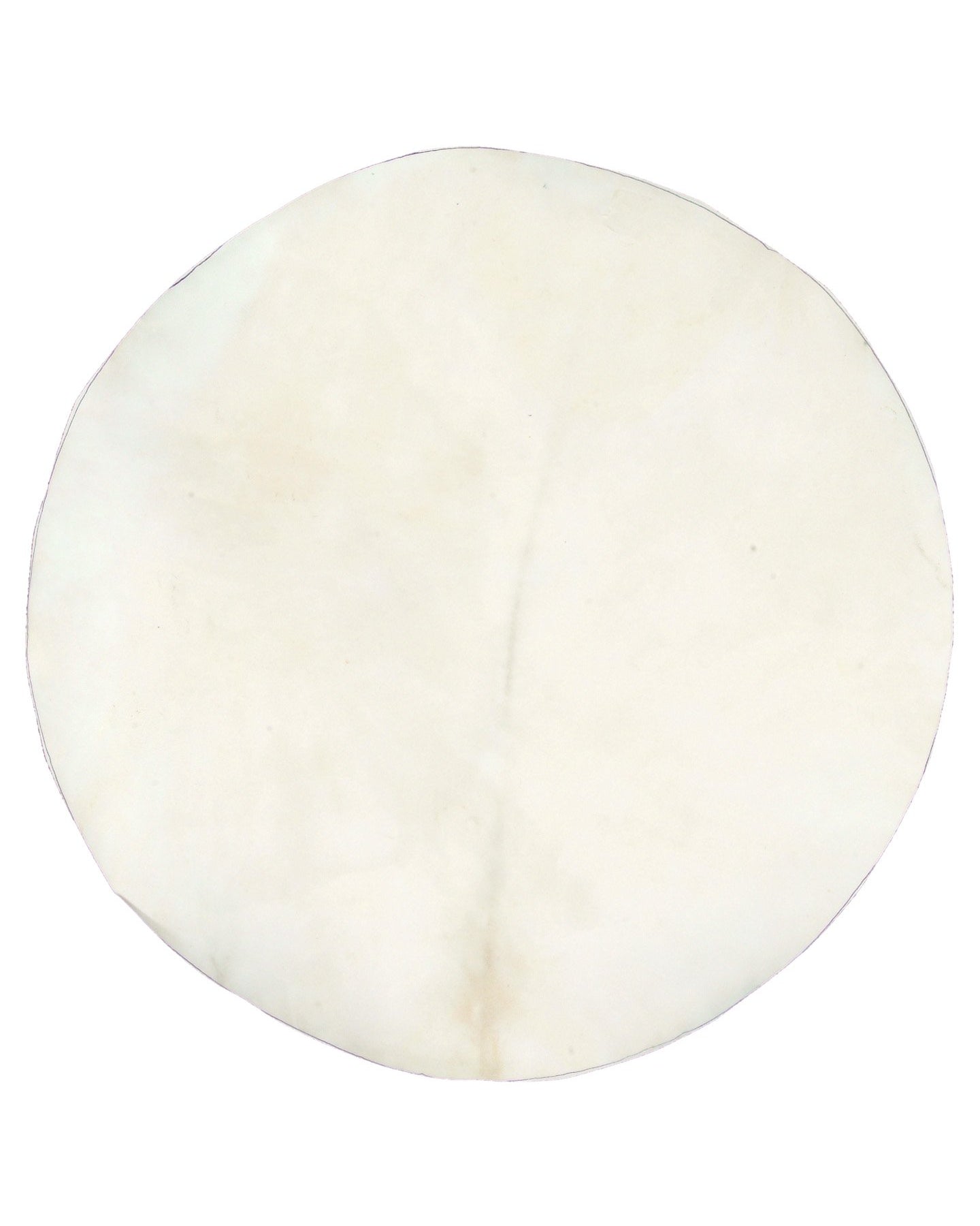 WHITE, THIN - Round of goatskin, no hair, near white. Color may differ slightly from image. Similar to GT18-MED, may be used as banjo or drum head.