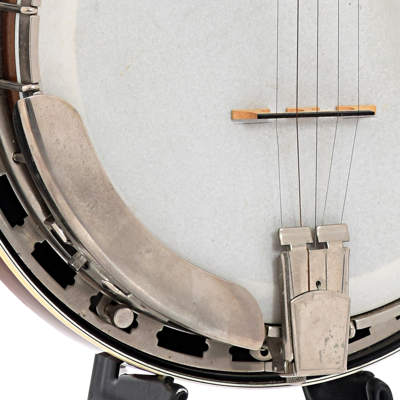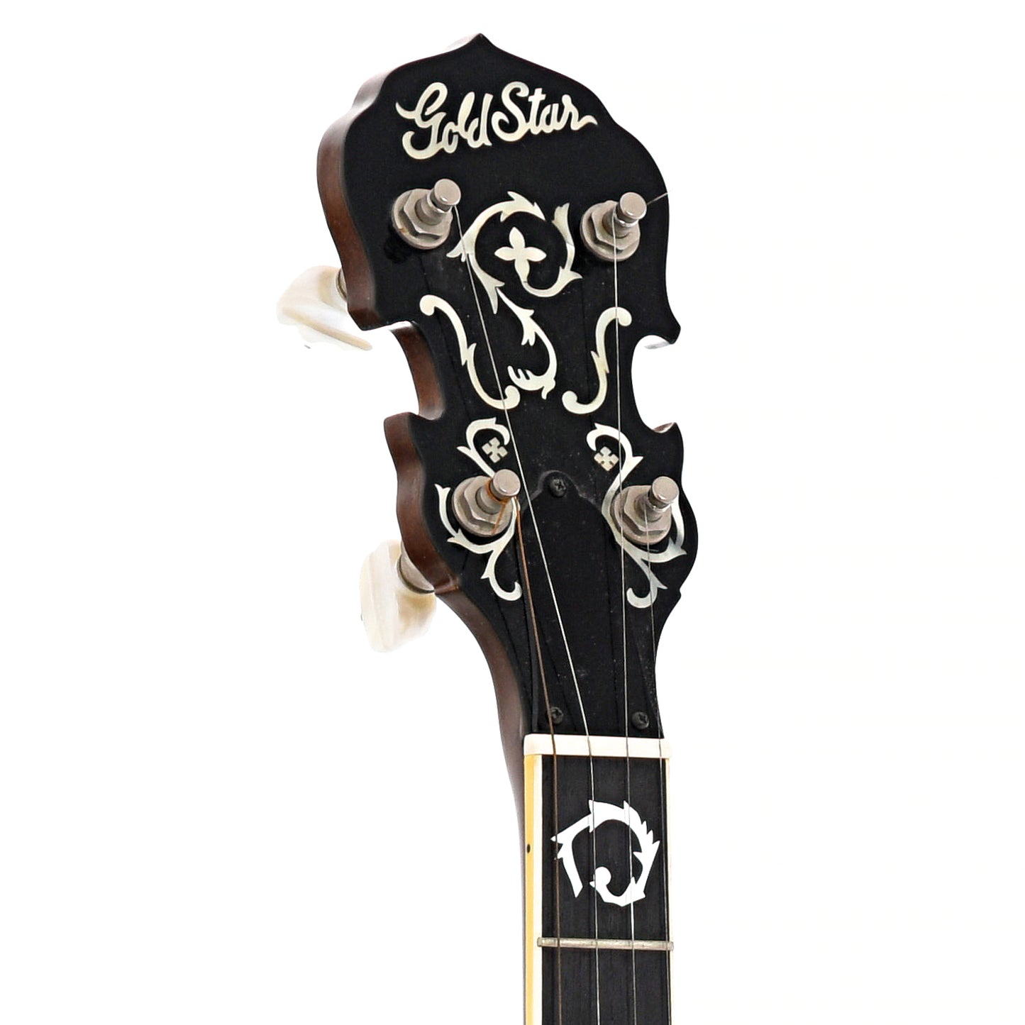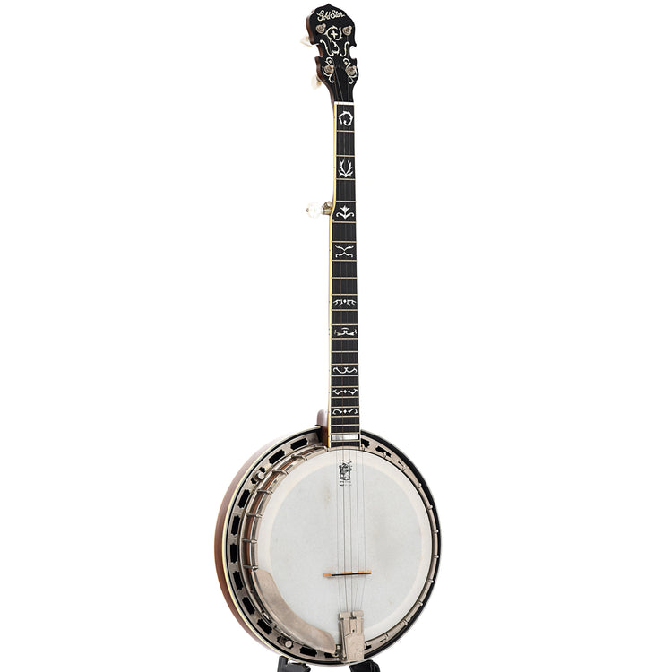 The Gold Star banjos were very nice import banjos in their day. Most are still in use. This G11W needs some work to get it back in playable condition. With OHSC (blue lining). VG-EC except needs (dowel and re-drill holes for the hanger bolts that hold neck on, replace head, restring, etc. - sold AS-IS)