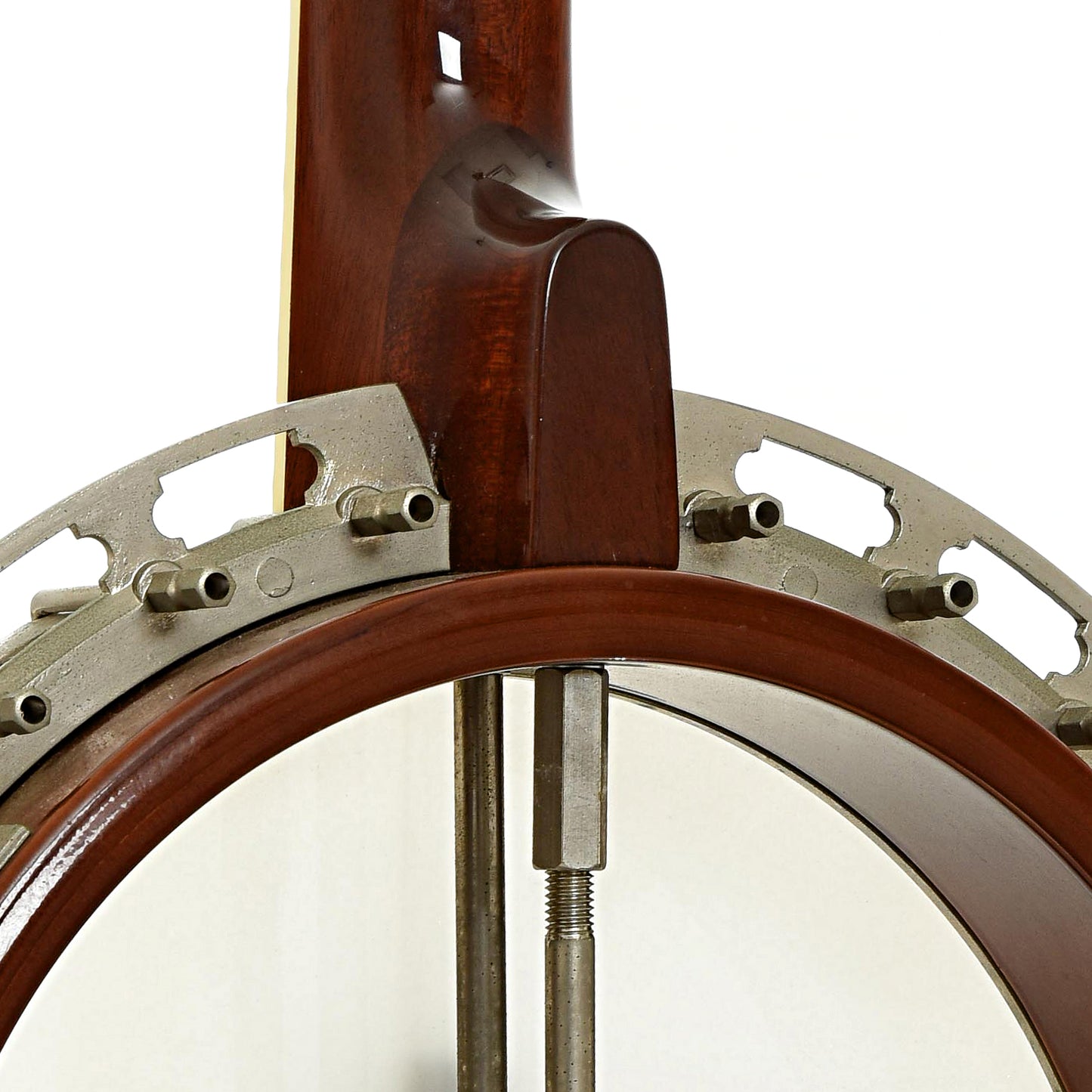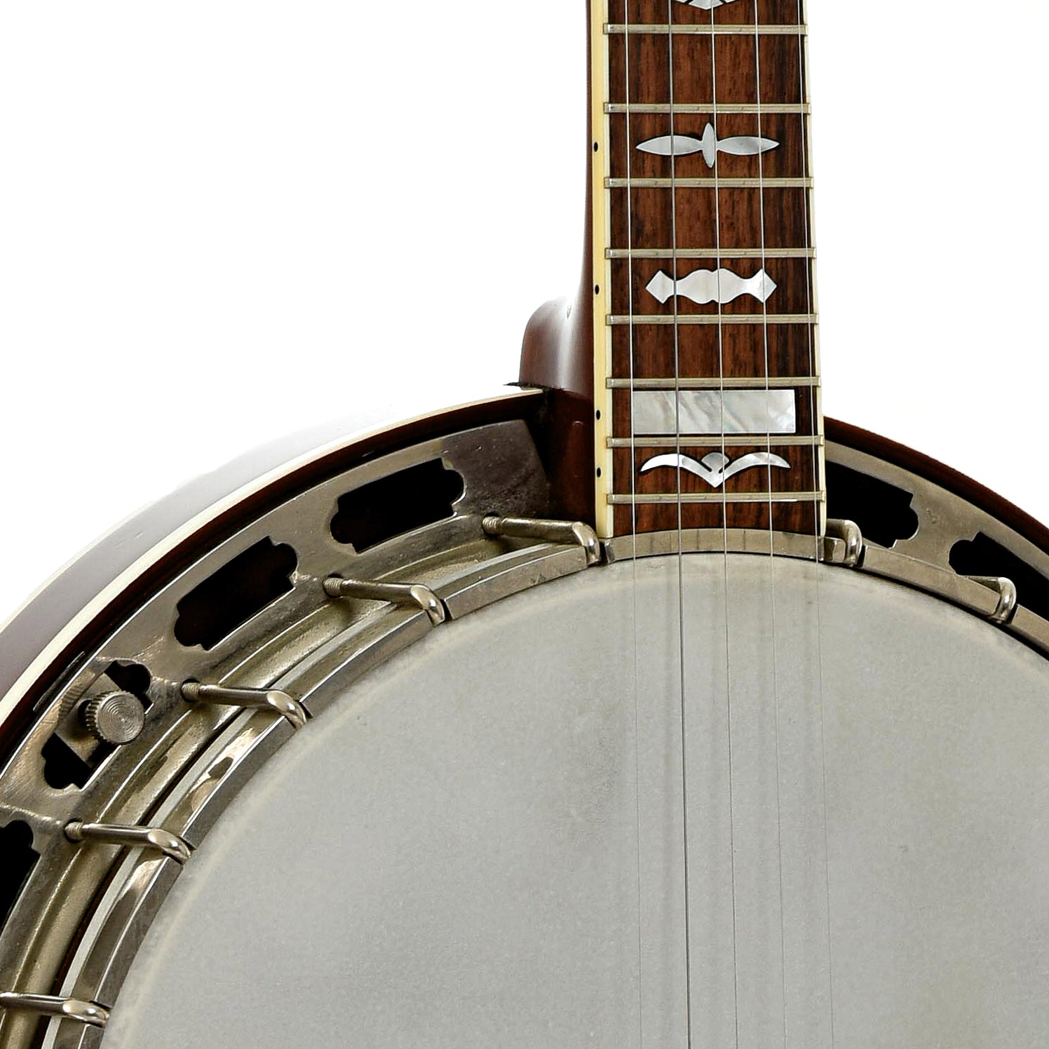A high-quality import resonator bluegrass banjo, the GF-85 has a mahogany neck, double white-bound resonator, and white-bound 22-fret rosewood fingerboard. Other features include a flathead tone ring and one piece flange. Loud, banging tone! Superior hard shell case. Built in China.