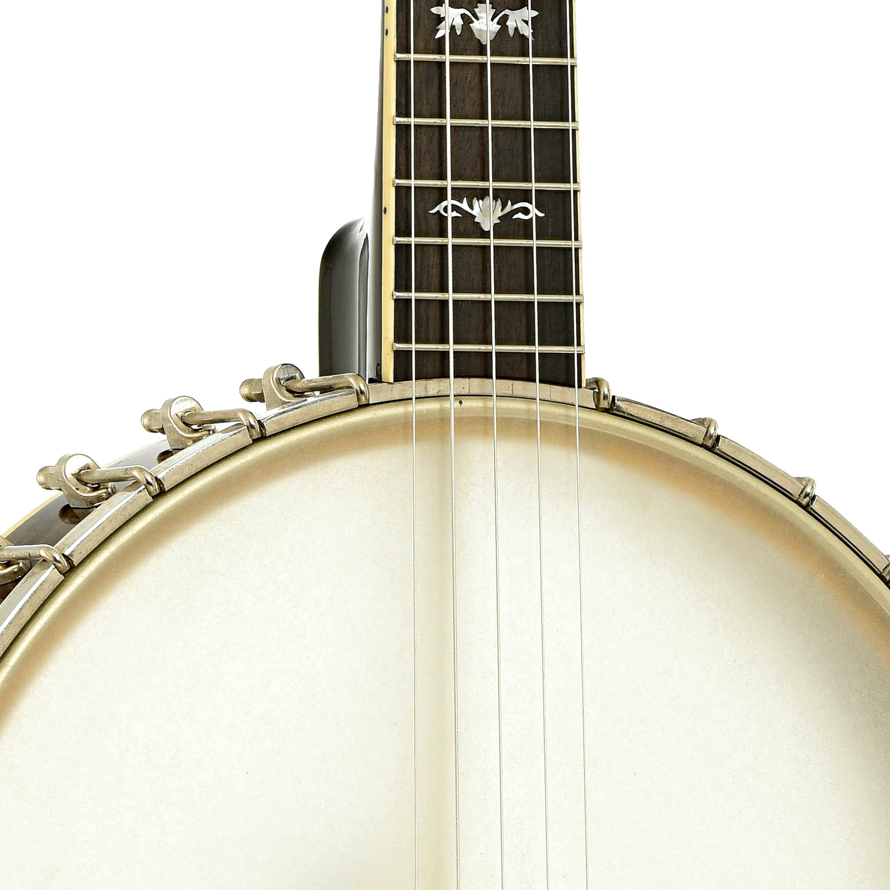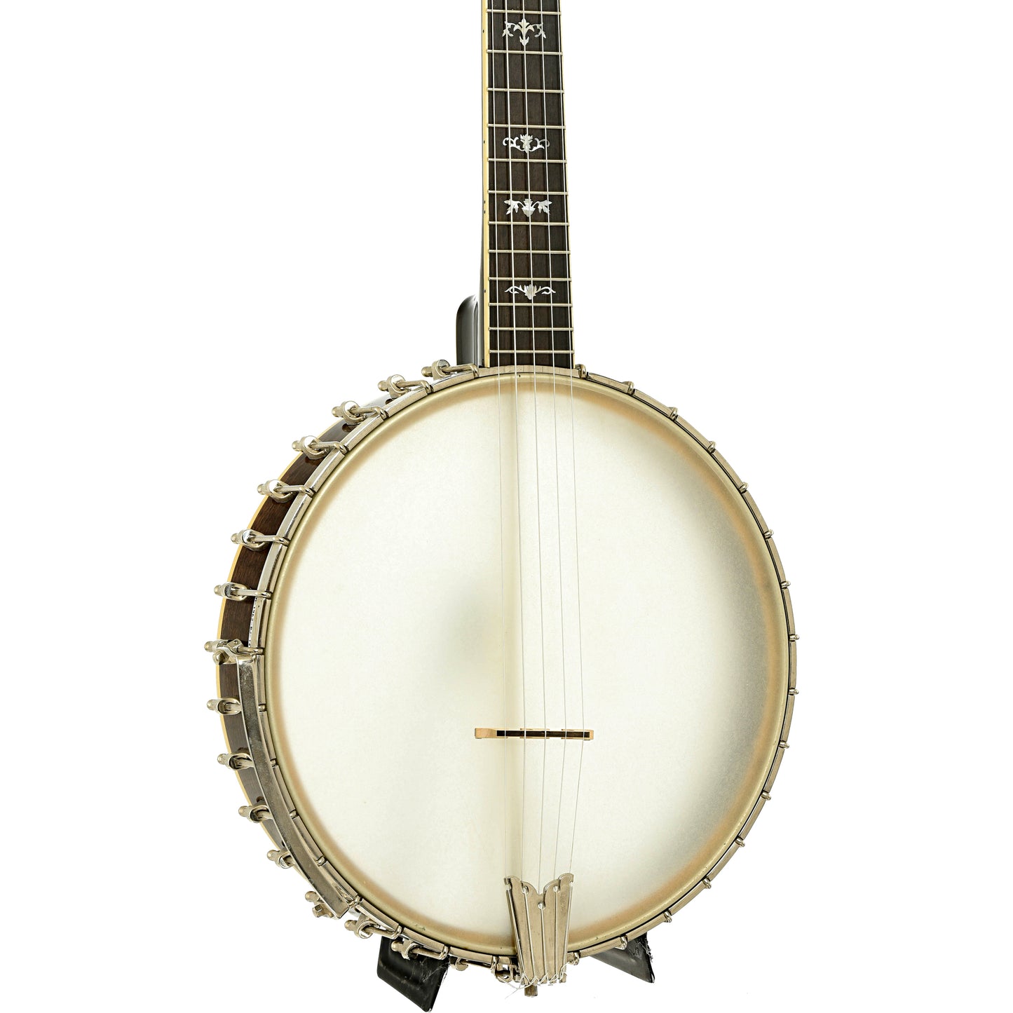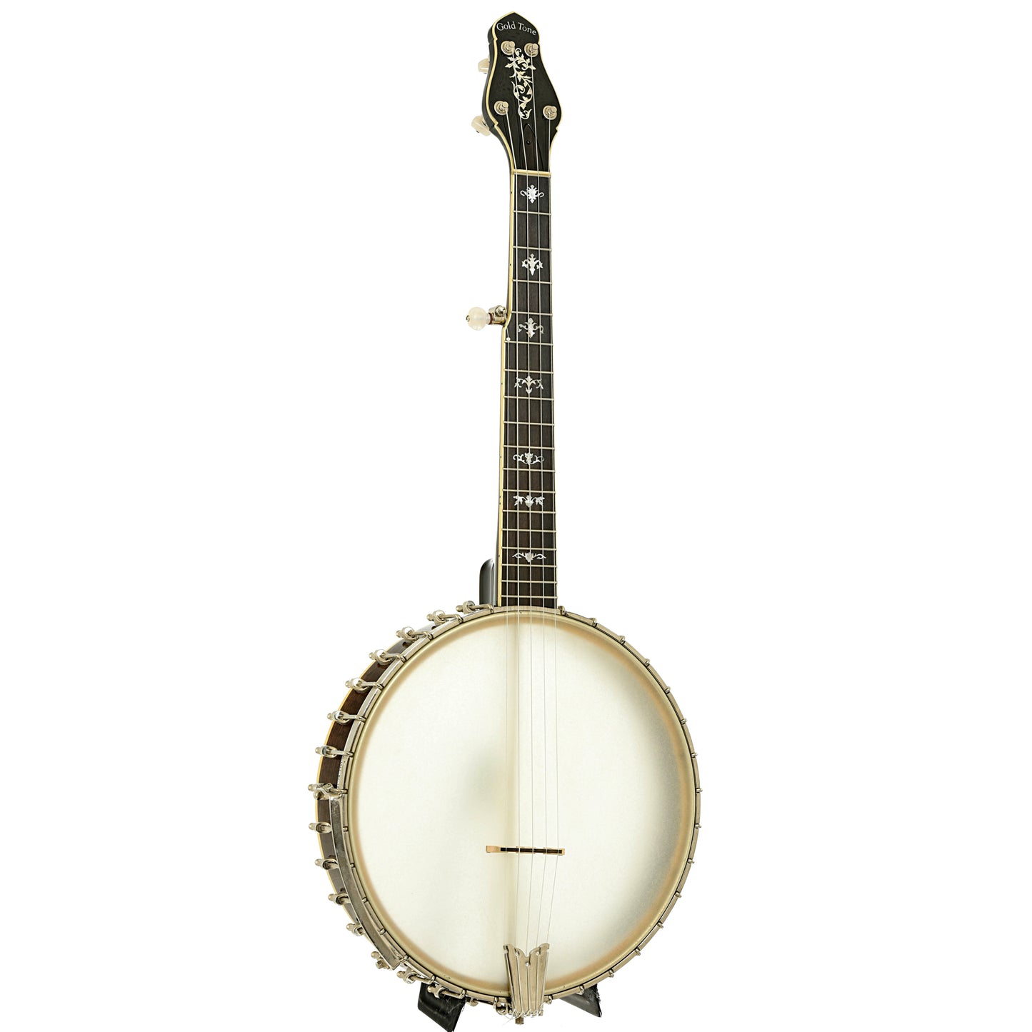 The success of the Gold Tone 4-string Cello-Banjo inspired this 5-string version, in G tuning tuned an octave down. Features on this 14” maple rim, a rolled brass flat bar tone ring, and a Renaissance head for a really big, deep tone! Equipped with a bound ebony fingerboard with fancy inlay, and Planetary tuners. Original hard shell case. Import.