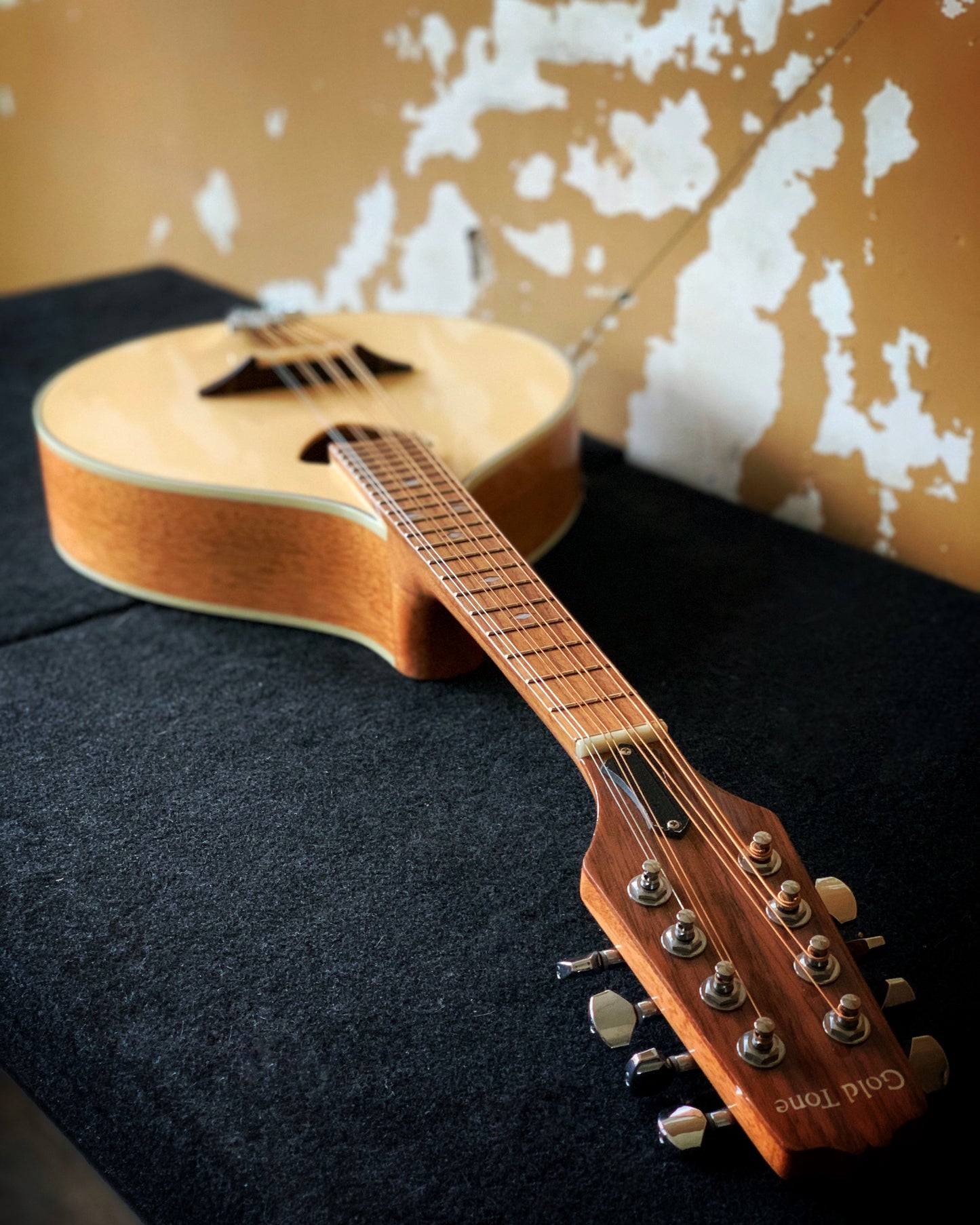 The viola of the mandolin family, the mandola tunes to CGDA (low to high), a fifth below the mandolin. It has a rich low voice often heard in Celtic music. Lightweight gigbag included.