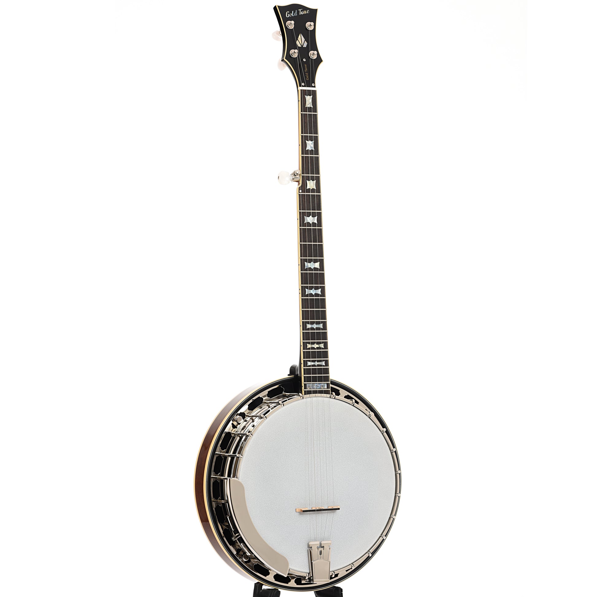 The Gold Tone Mastertone OB-2 is a tribute to the classic Bowtie banjos of the 1960's. With a 19-hole brass flathead tone ring, paddle style peghead, bowtie inlays in an ebony fingerboard and a golden sunburst finish, it is a bluegrass classic in its own right.