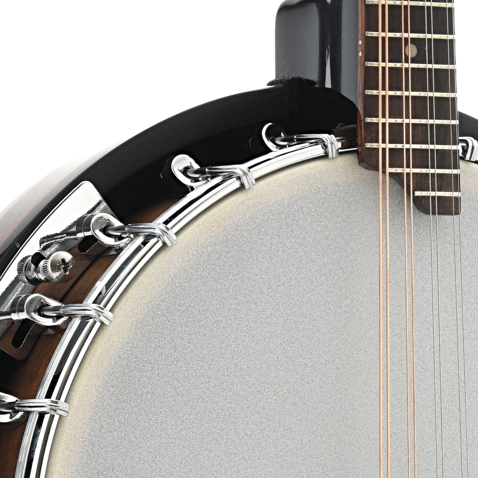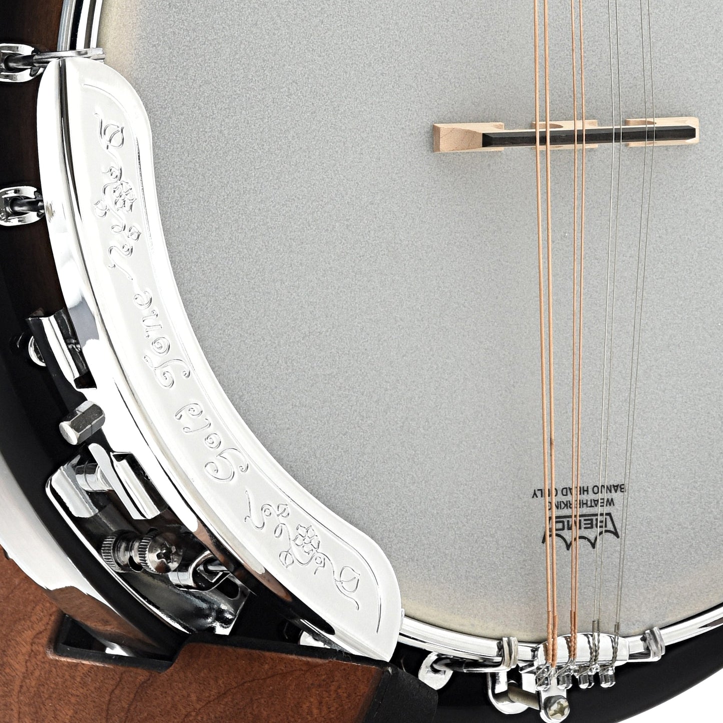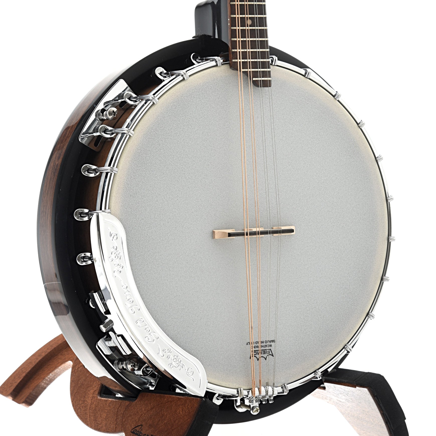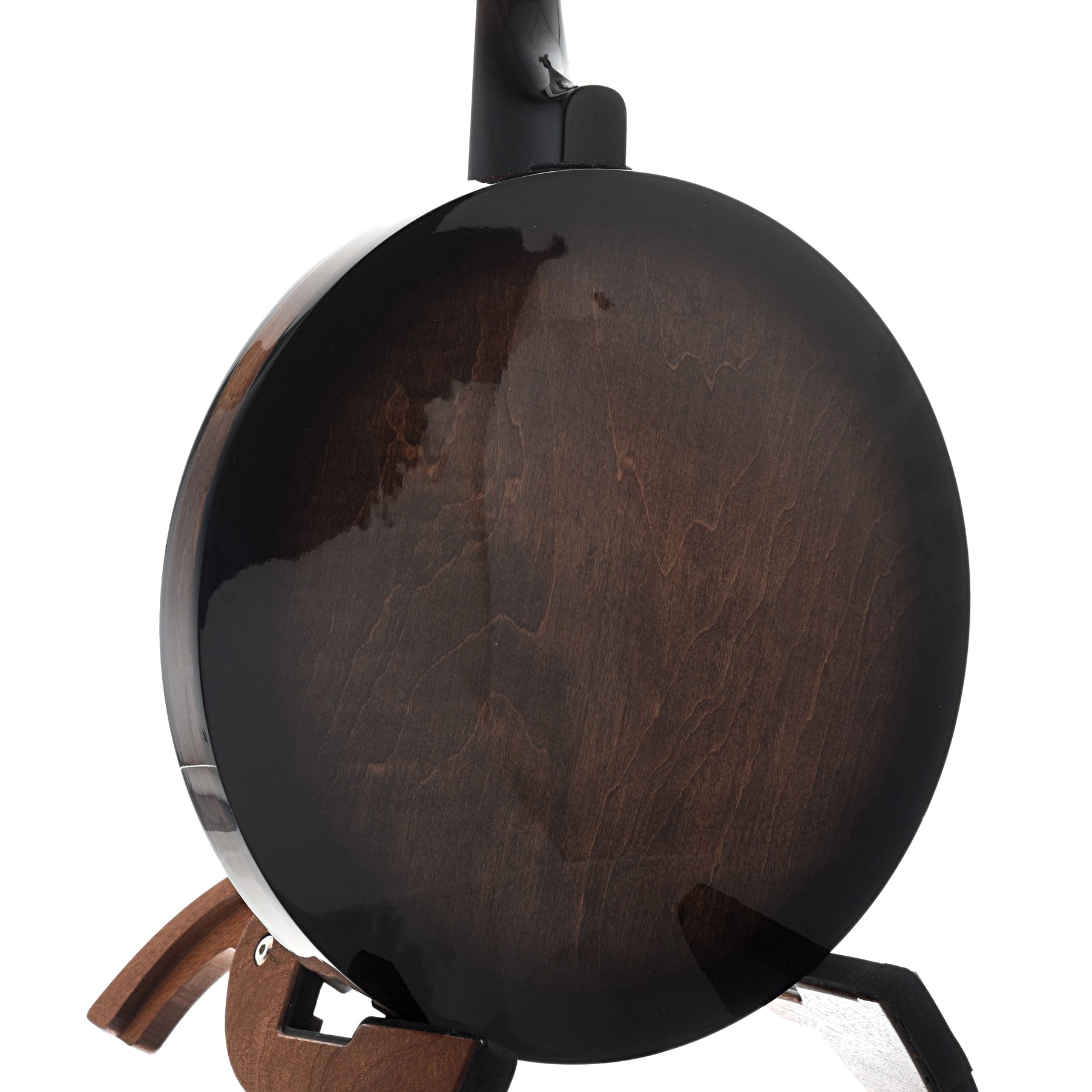 Dark stained maple neck and resonator, 11" rim, brass rod tone hoop, 15 full frets and 2 partial, dot position inlays, frosted Remo Weatherking head, chrome hardware, no-knot tailpiece, armrest, open-gear tuners with metal buttons. Resonator is 13-1/4" diameter, may be removed to play as an openback.
