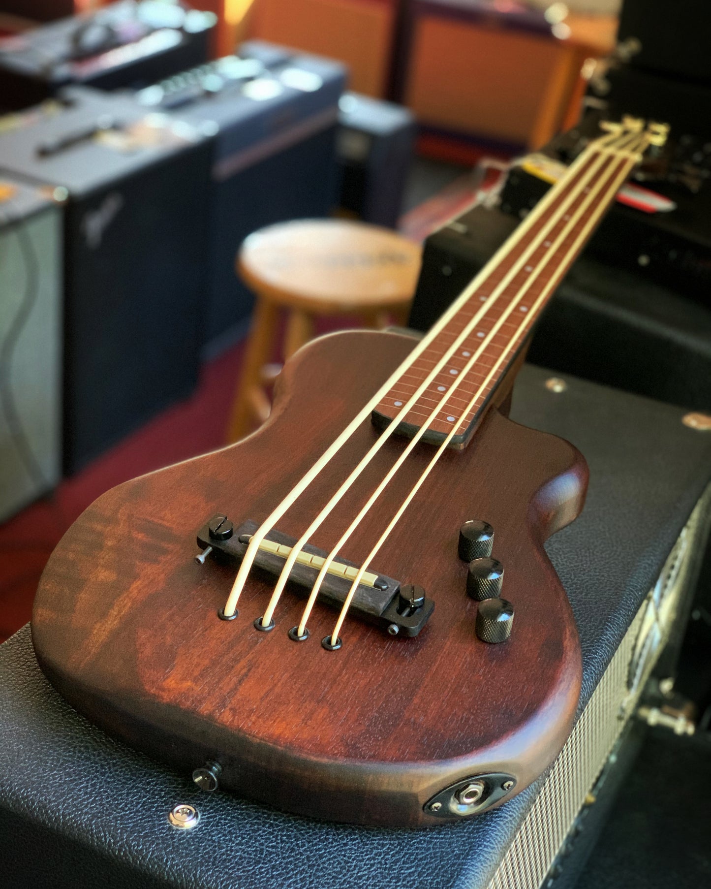 - Mahogany neck with fretless walnut fingerboard (1-11/16" nut, 23" scale)