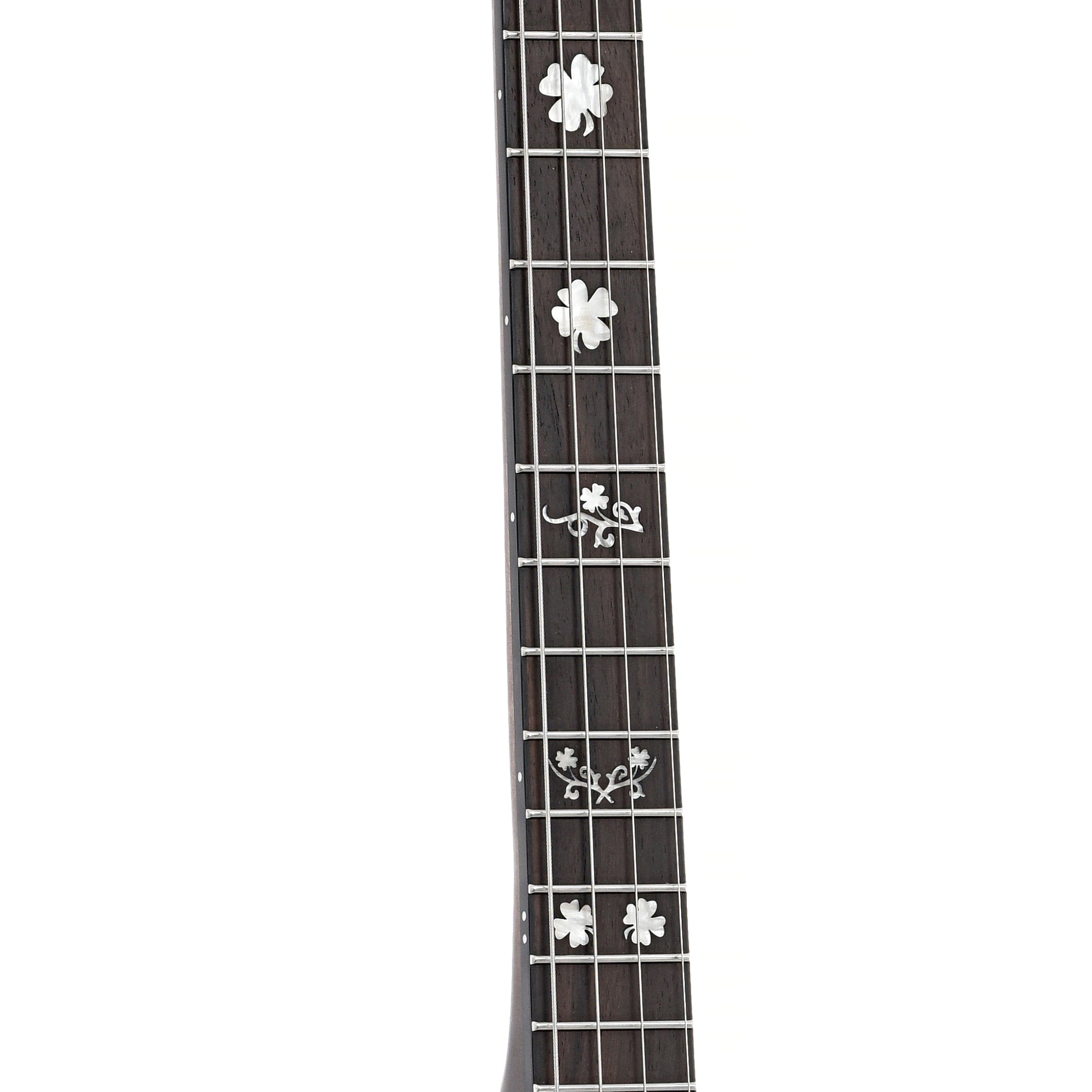 This Gold Tone tenor banjo is designed for low Irish Tuning (GDAE), and the 12” pot offers impressive volume and deep tone. The17-fret neck fingerboard is decorated with Celtic-themed inlays. It’s equipped with chrome plated hardware, including Planetary geared tuners.
