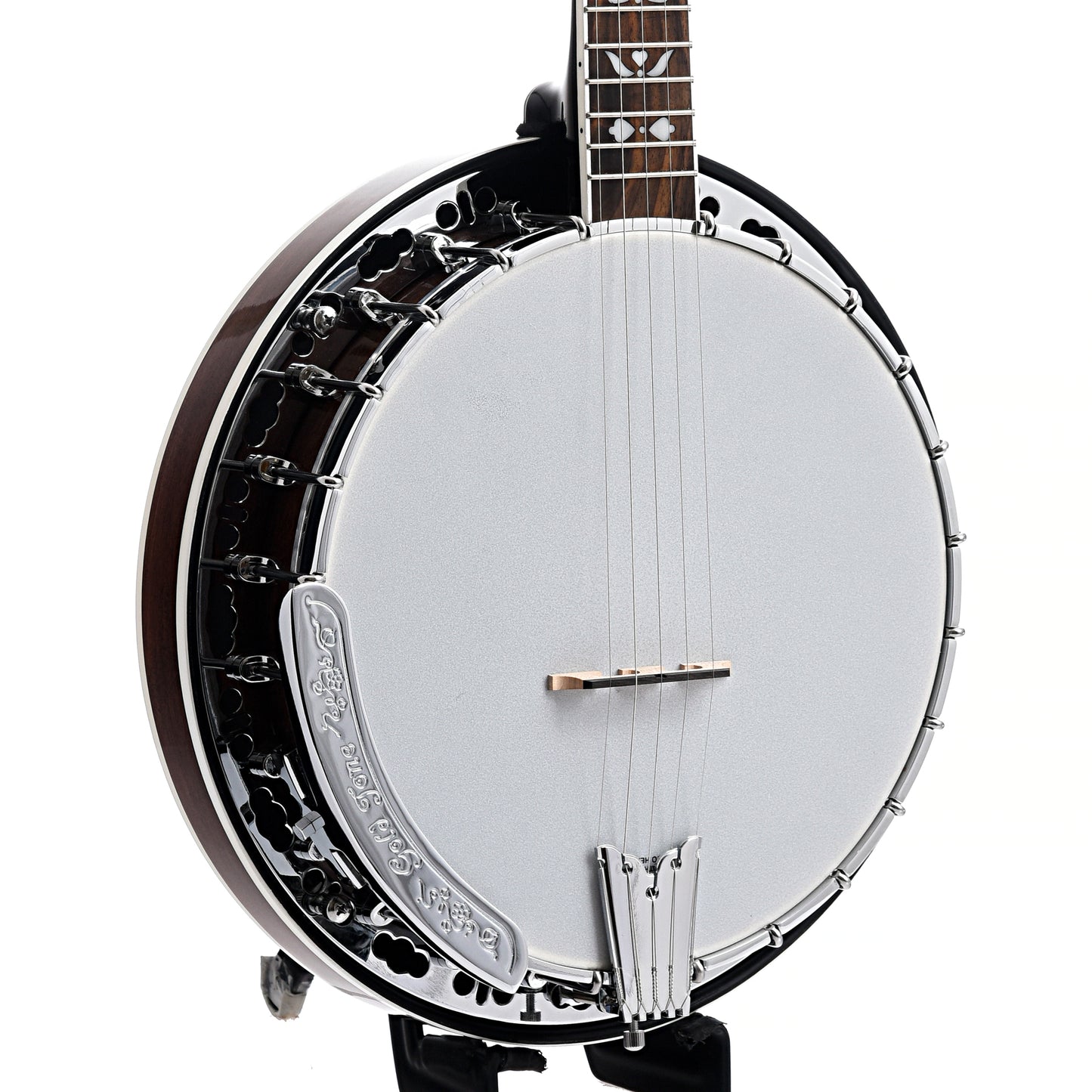 Traditional inlay pattern for the Bluegrass look, rolled brass tone hoop provides lighter weight. Great value. Gigbag included.