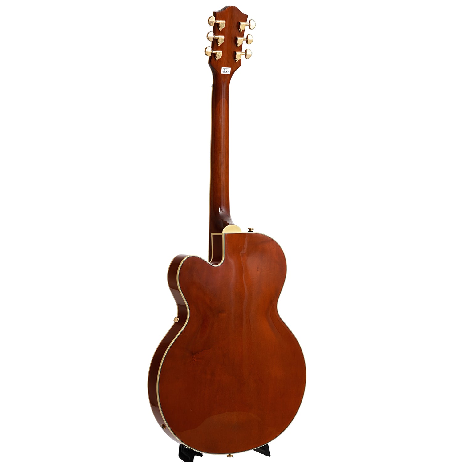 - Fully hollow, thinner 2.25” single-cutaway maple body with arched top for rich fullness, deep resonance and “big-body sound”