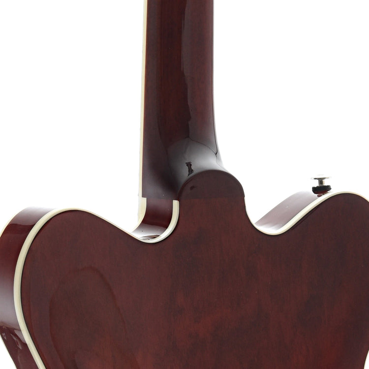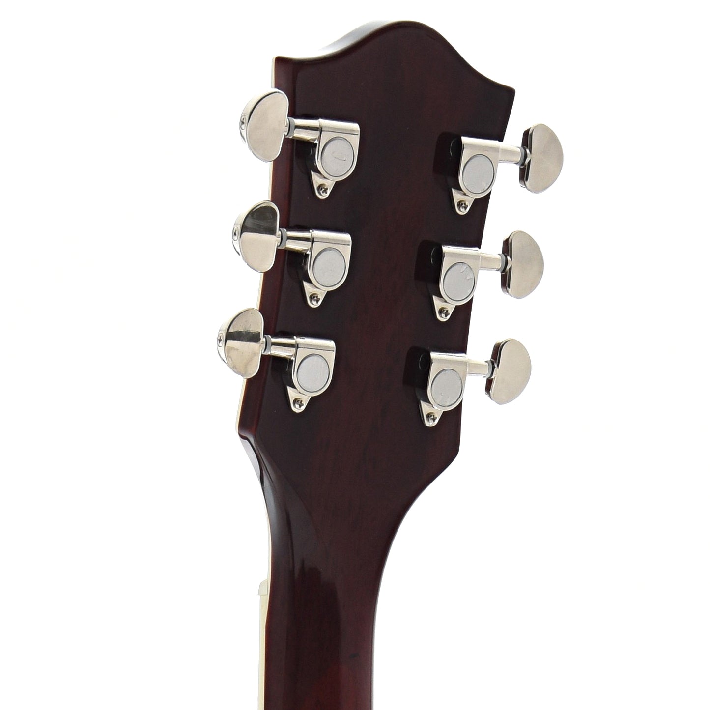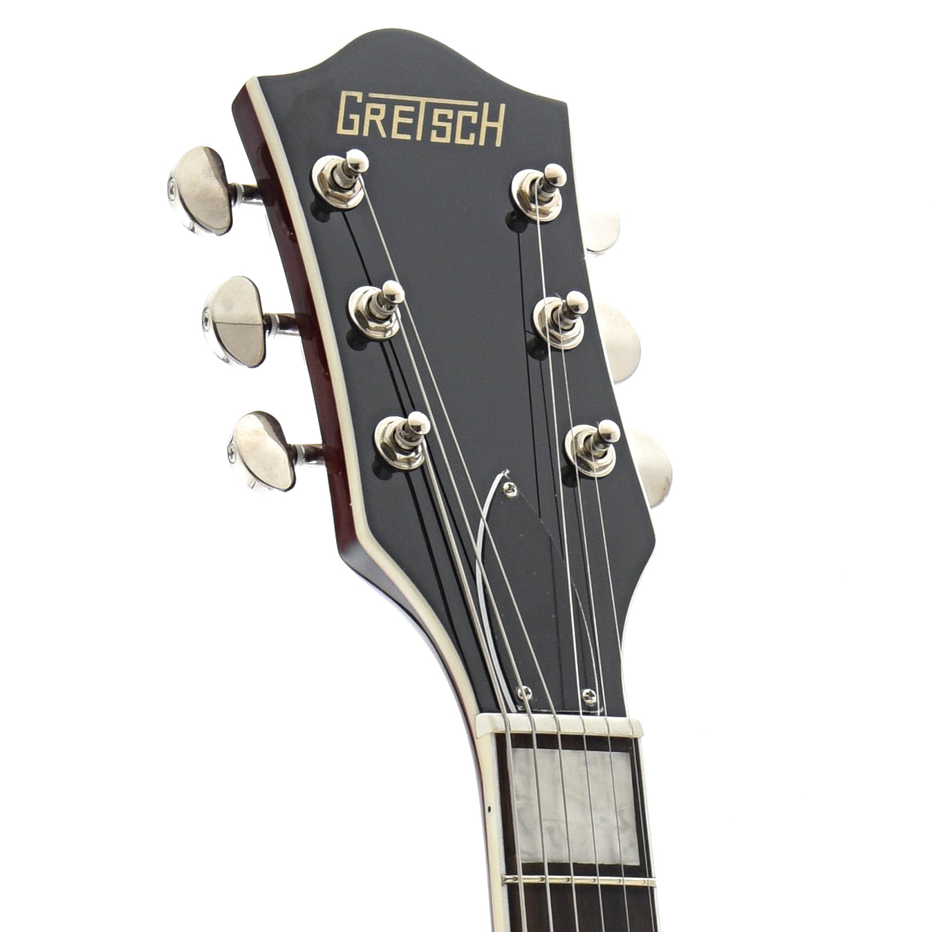All the classic eye-catching style you’ve come to expect from Gretsch is here—vintage-style black control knobs, enlarged F-holes for increased acoustic projection, elegant aged white binding with upgraded purfling, slick-looking nickel hardware, three-ply tortoise pickguard and arched laminated maple construction.