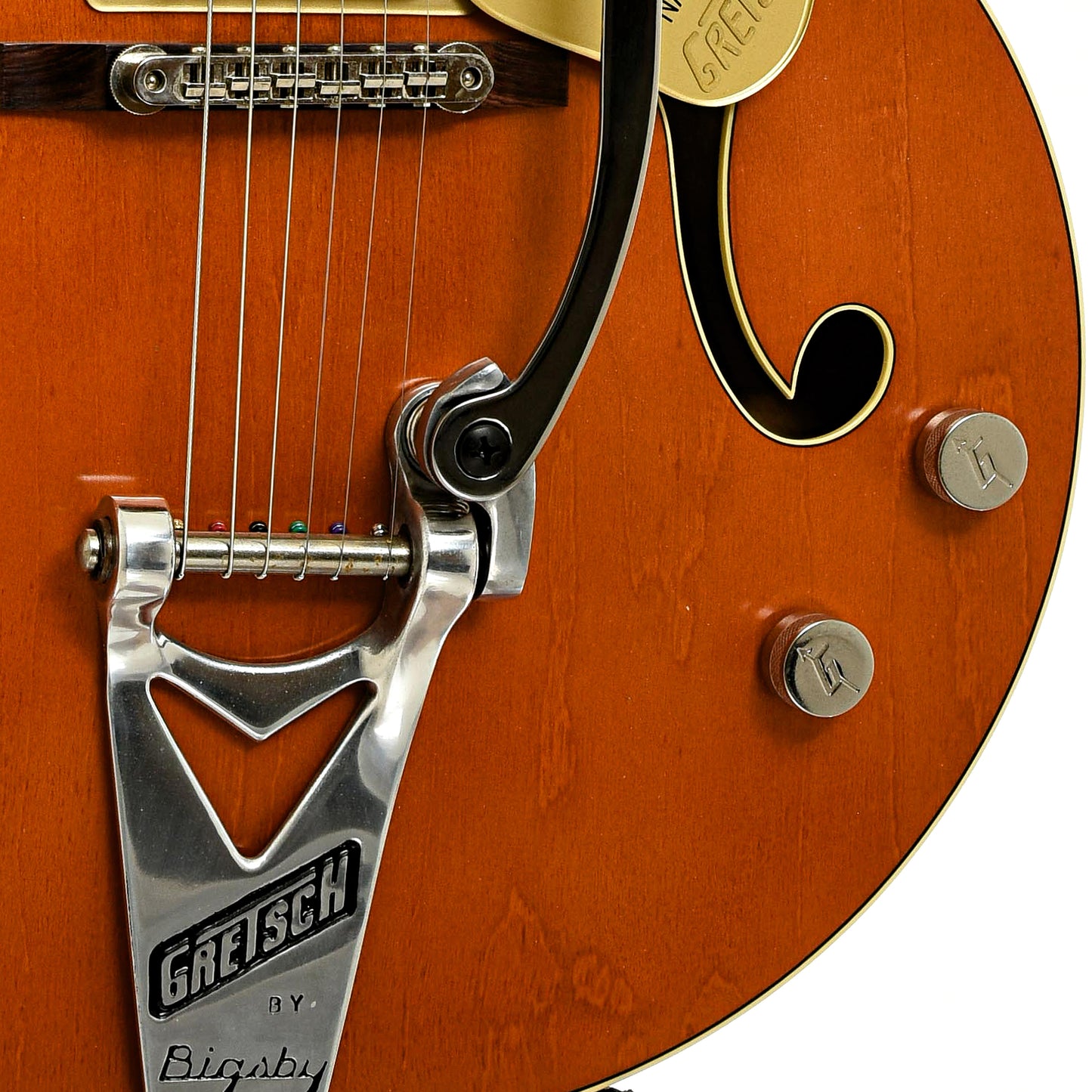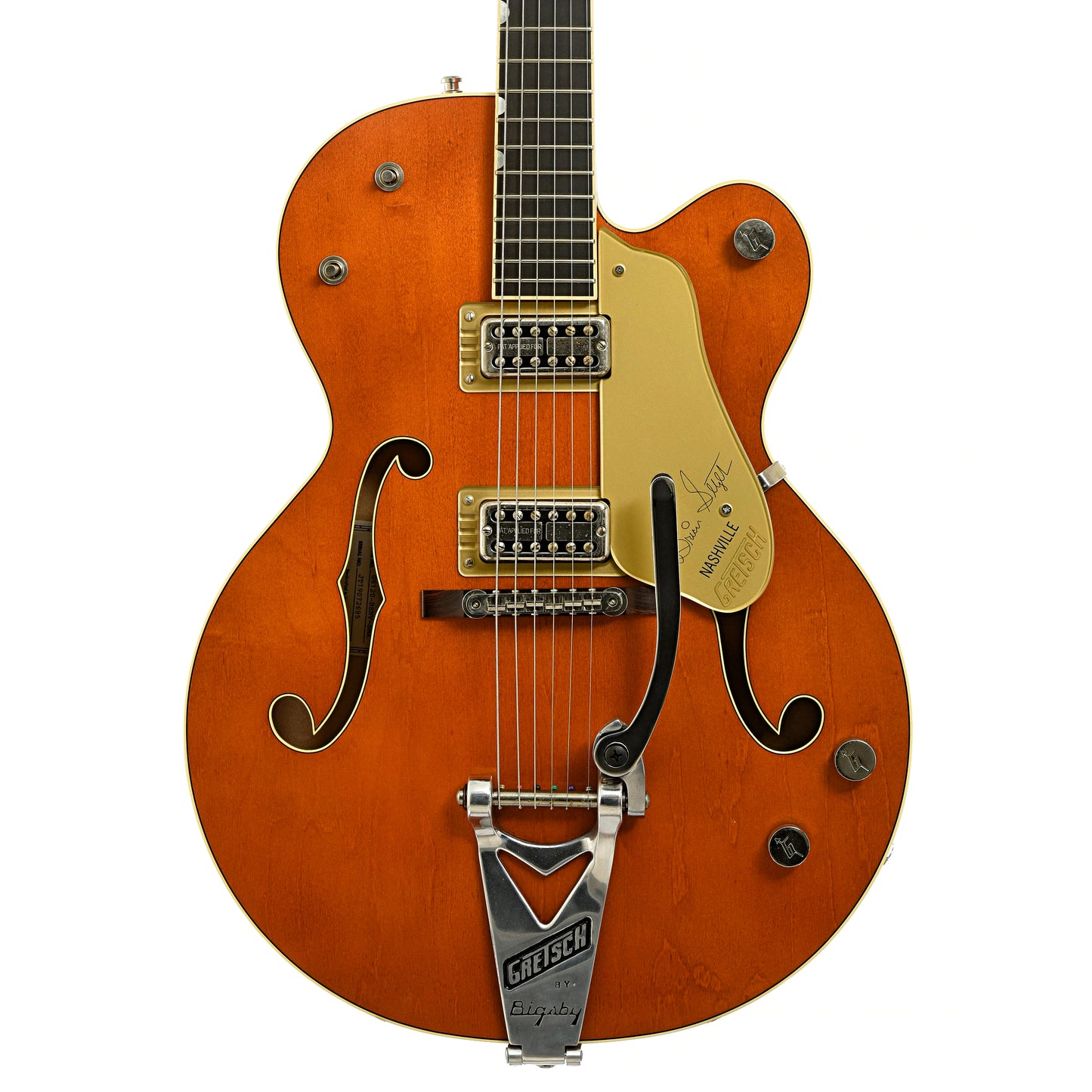 This Gretsch Brian Setzer Nashville '59 Smoke model is loaded with standout features, including a Smoke Orange finish on a maple hollowbody and neck, ebony fingerboard, and a pair of TV Jones Filter'Tron pickups for bright, punchy tone. It’s equipped with an Adjusto-Matic bridge on a rosewood base and a Bigsby tremolo tailpiece. Original hard shell case. Import. On consignment.