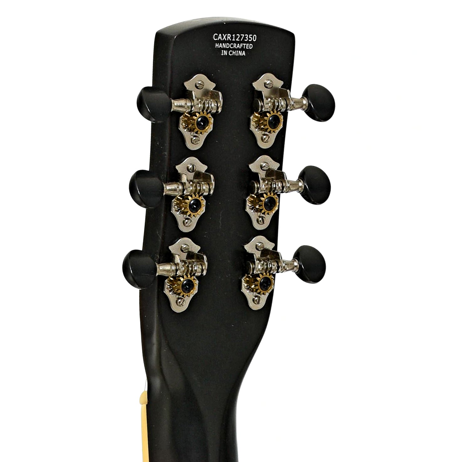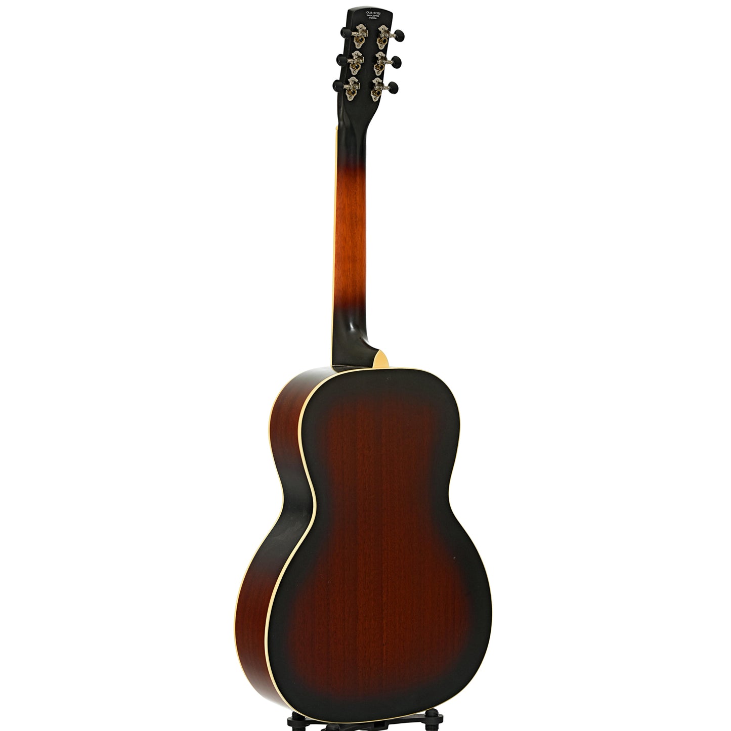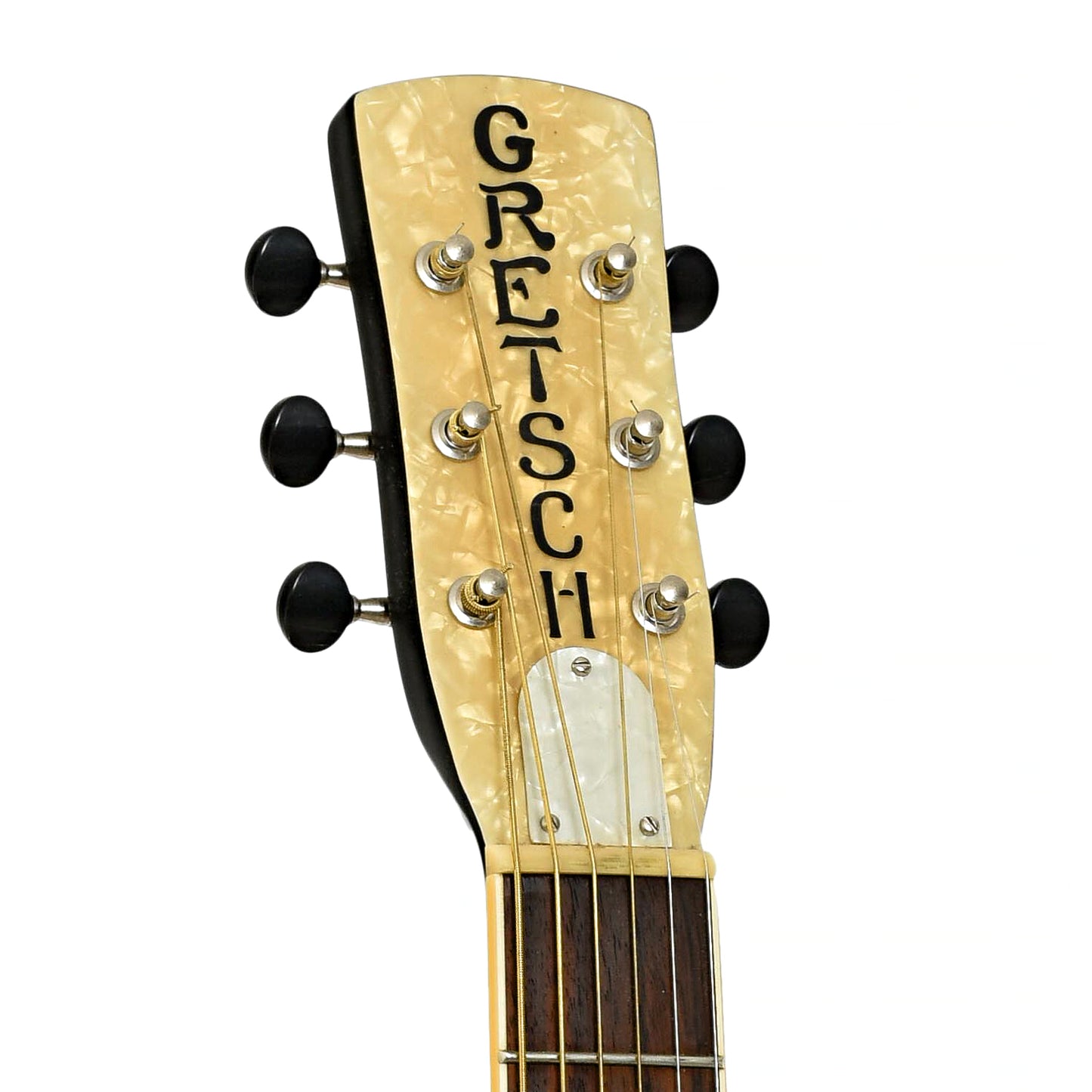 An affordable roundneck resonator by Gretsch, this Bobtail features mahogany body and neck, soundwell, 19 fret bound Padauk fretboard, spider bridge, Poinsettia cover-plate, Grover vintage-style open-gear tuners. Fishman FRGP1 pickup installed. Original hard shell case. Import.