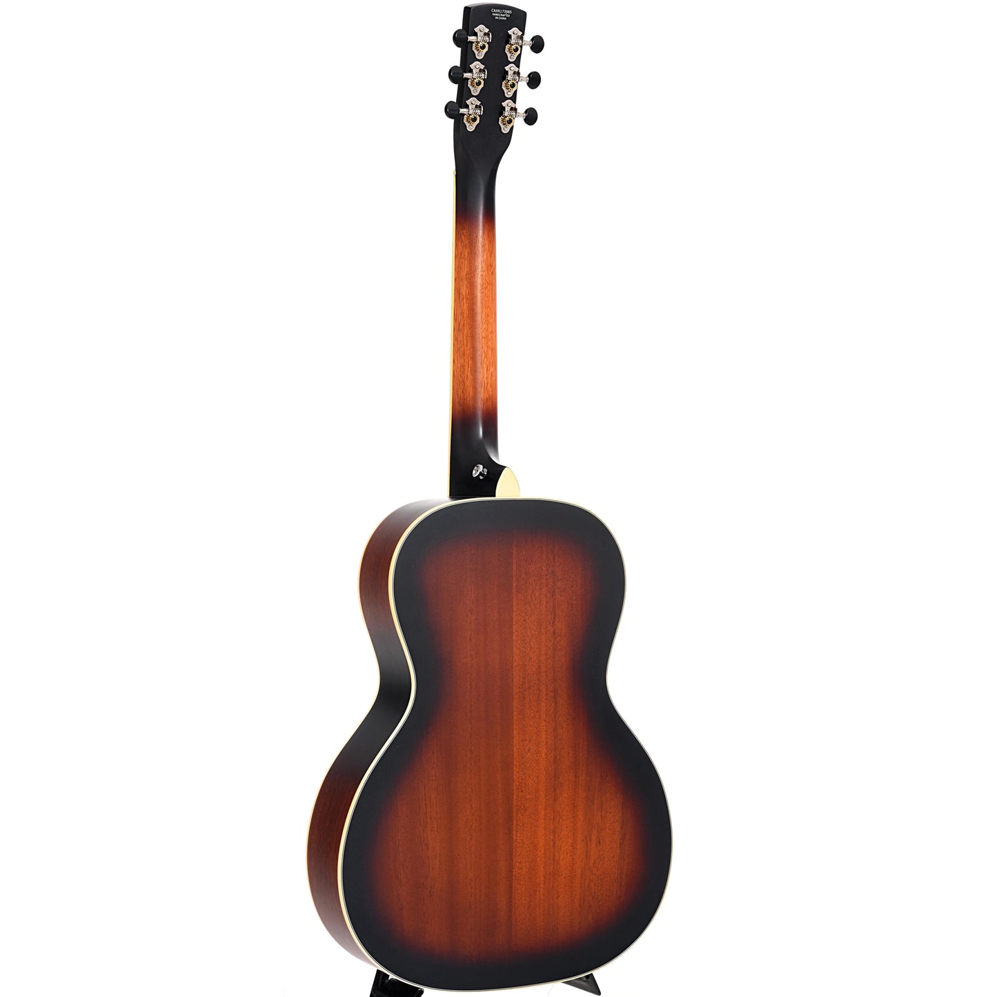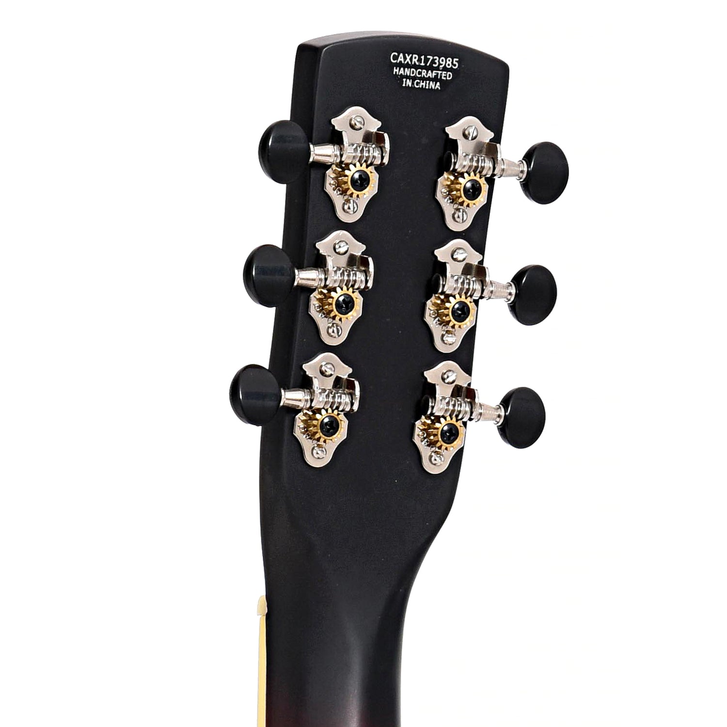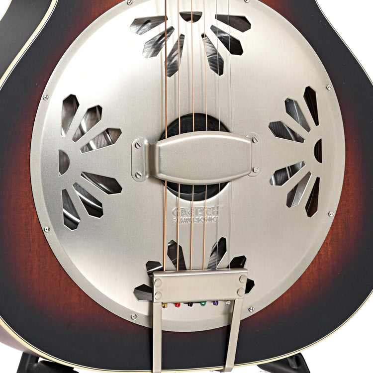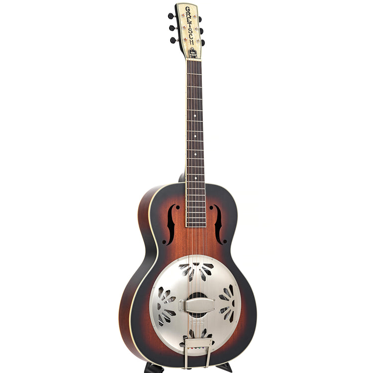 This is a cool entry-level round neck resonator guitar. It has an all mahogany body and neck, aluminum cone and a biscuit bridge. Has that resonator tone. Suitable for slide! (could use new saddle, strings, etc. plays okay - sold AS-IS)